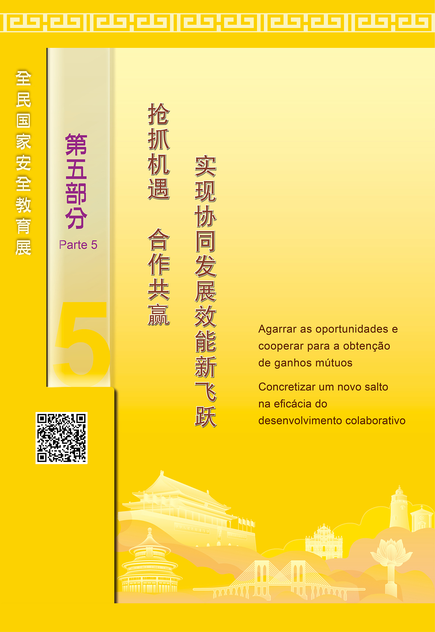 展览的第六部分为“团结聚力 包容和谐 开创国家安全教育新局面”。自2018年起,特区政府与澳门中联办连续八次举办“全民国家安全教育展”,观展人次屡创新高,澳门居民维护国家安全的意识和责任感不断提升,初步形成了国家安全“人人有责、人人尽责、人人可为”的良好社会氛围。中央驻澳机构、特区政府坚持以总体国家安全观为引领,贯彻落实习近平主席关于加强国家安全教育的重要指示精神,联同社会各界广泛开展各类型国安宣教工作,国家安全意识深入民心,在澳门落地生根。