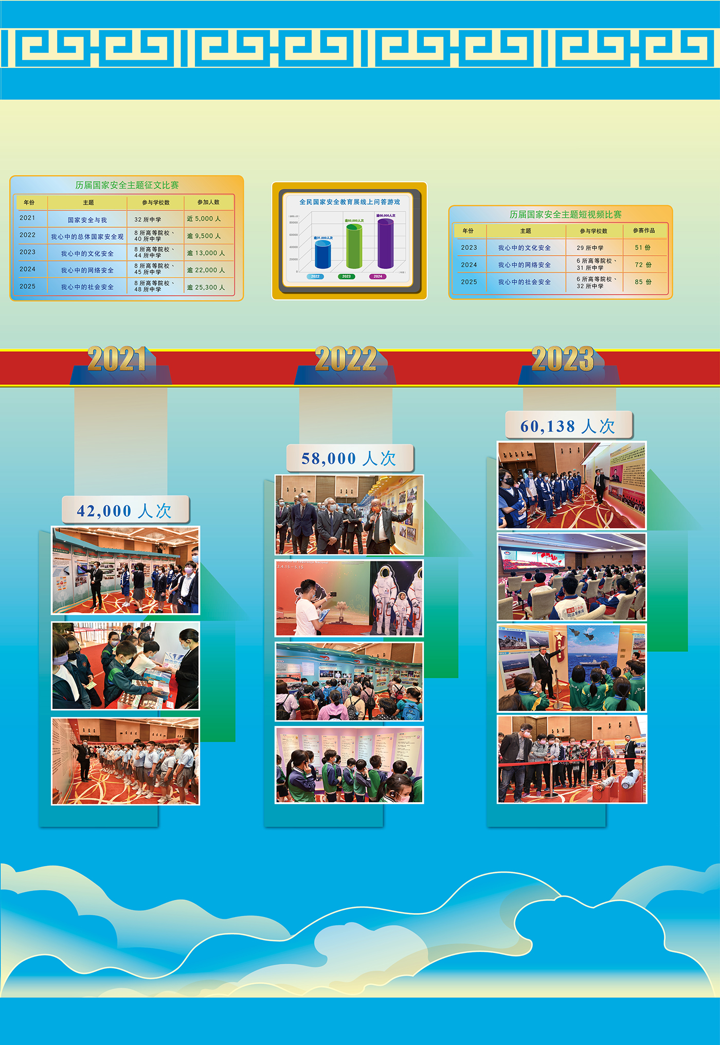 国安展自4月15日开放以来,以结合文字、图片和视频的丰富内容,持续吸引本澳居民、社会各界、公共部门人员、青年及学校组织学生前往参观。