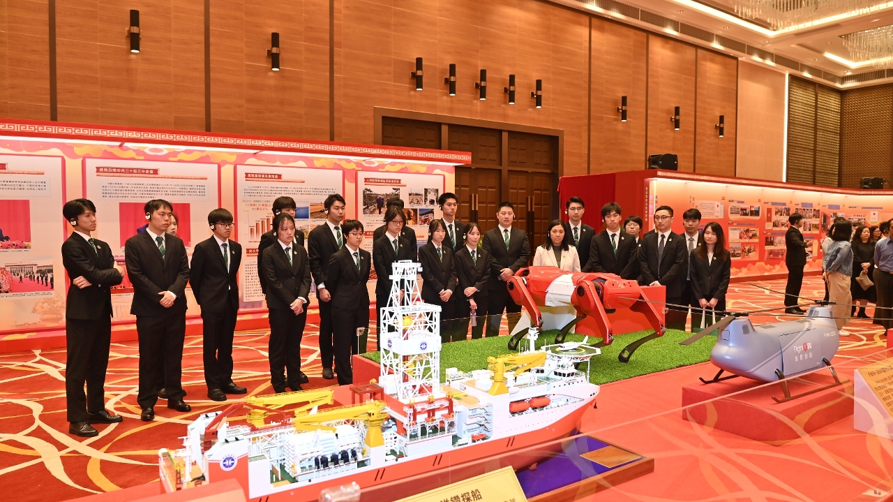 展览以“全民国家安全教育,走深走实十周年”为主题,共分为序章和六个专题部分,通过图片、视频和多媒体互动展项,展示国家在政治、经济、社会、网络等各领域的安全成就,以及澳门特区在维护国家安全上的实践成果。参观过程中,澳理大国旗仪仗队队员聆听讲解,学习总体国家安全观。