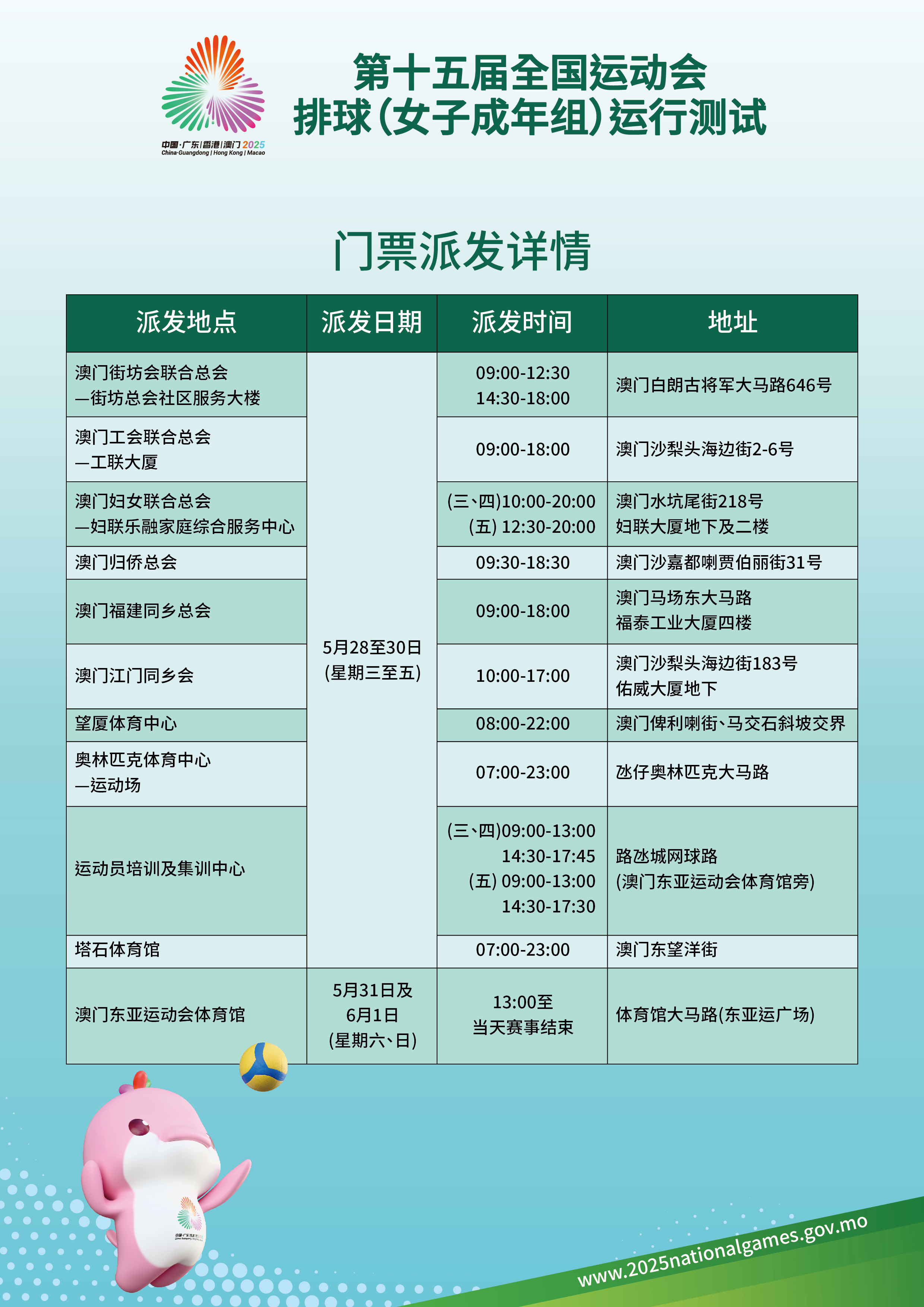 如欲参阅更多赛事资料,可浏览赛事官方网页www.2025nationalgames.gov.mo。同时,欢迎关注“第十五届全运会澳门赛区”Facebook 专页及“全运会残特奥澳门赛区”微信公众号。