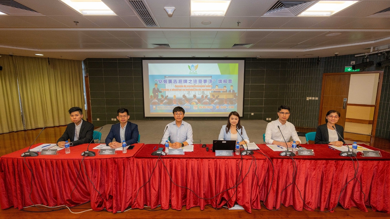 市政署日前联同多个政府部门举行“安装广告招牌之注意事项”讲解会,向商户代表介绍监管广告招牌的相关法律及指引,藉此加深商户对相关法规的认识、责任与义务。呼吁广告或招牌持有人须定期对广告或招牌作出检查保养及维修,以保障公共安全。