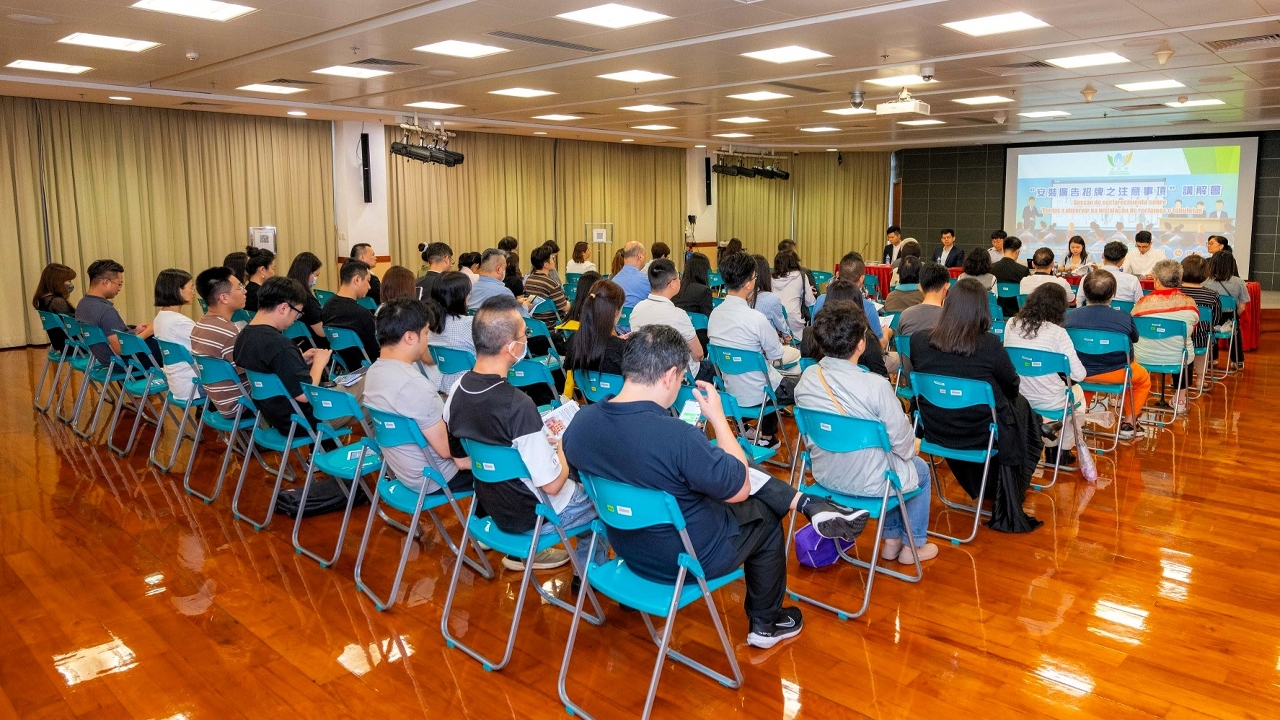 讲解会于5月29日在下环活动中心礼堂举行,市政署、文化局、经济及科技发展局及卫生局代表,向近90名商户及业界代表分别介绍广告监管的相关法例、广告招牌安装指引、被评定的不动产及缓冲区内广告招牌安装指引、广告内容应注意事项、申请医疗及健康相关广告之注意事项及关于烟草制品及酒精饮料在广告招牌之注意事项等,让与会者更清晰了解店铺安装及展示广告时的具体要求。