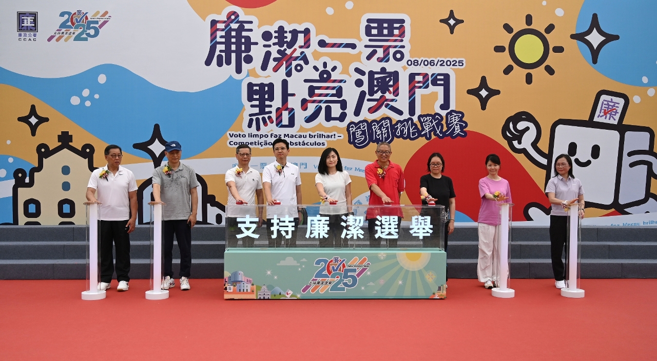 由廉政公署举办的“廉洁一票 点亮澳门”闯关挑战赛今(8)日于塔石广场圆满举行。廉署期望透过是次活动,让参加者亲身体验公平竞技的重要性,提升市民对廉洁选举的关注和认知,营造全城廉洁选举的氛围。
