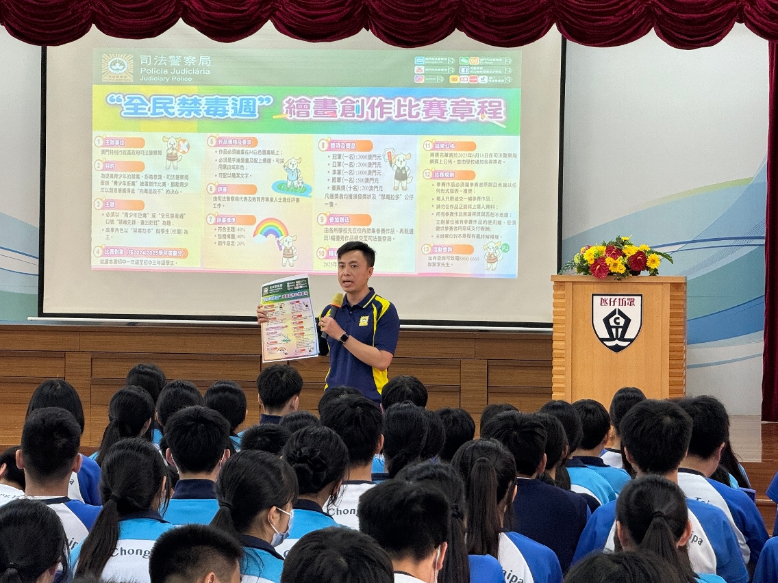 为贯彻特区政府禁毒工作方针及配合“全民禁毒周”活动,司法警察局举办以“青少年拒毒”为主题的绘画创作比赛,透过艺术创作提升青少年的禁毒、拒毒意识。是次比赛面向全澳初中学生,报名日期由5月19日至6月6日,司警局关注少年组自5月中旬起前往本澳各区中学开展相关宣传推广工作,获得教育界大力支持。