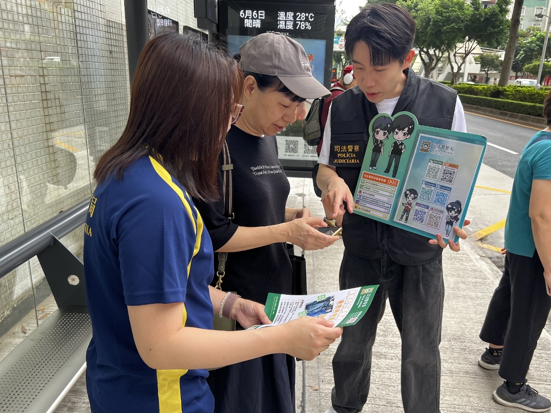 为提升市民防罪意识,司法警察局持续开展多元化防罪宣传工作,于6月上旬派员前往本澳各区巴士站更新防罪资讯,并向市民讲解预防盗窃及诈骗罪案要点,强化社区防罪网络。