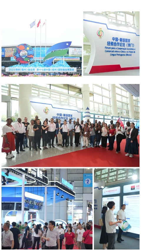 2025年6月13日至15日,中葡论坛常设秘书处代表团赴福州参加第十七届中国(福州)国际渔业博览会(以下简称“渔博会”)系列活动。代表团包括秘书处成员、驻华使馆代表、澳门中联办经济部代表以及中国与葡语国家蓝色经济合作研修班学员。