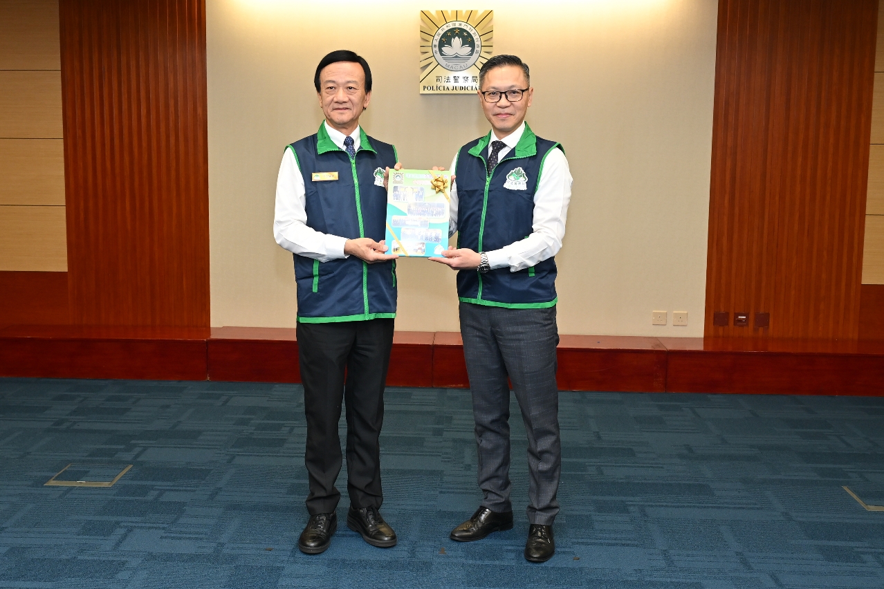 司法警察局与“司警局大厦防罪之友”成员举行防罪交流会议,就社区最新治安情况、共同开展防罪宣传工作、持续创新警民合作方式等议题深入探讨交流。会上还进行“社区警务工作杰出贡献”嘉许仪式,八位成员因过去多年致力促进警民关系、协助提高市民防罪意识获颁嘉许状。