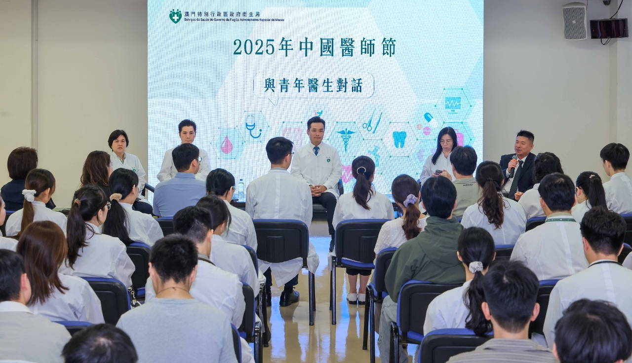日前卫生局局长罗奕龙、仁伯爵综合医院代院长戴华浩、澳门医学专科学院协调员林果、疾病预防及控制中心主任梁亦好、国际事务工作组组长暨中国国际应急医疗队(澳门)协调员柯量等,与多名本澳青年医生进行互动交流。罗奕龙局长表示,卫生局致力为居民提供适切医疗服务,通过制度、人才培养和梯队的建设等综合措施,多方面支持公私营医疗机构医疗人员持续专业发展。他感谢医疗人员的辛勤付出,强调青年医生是本澳医疗卫生事业发展的重要人力支撑,期望藉着互动交流关注他们在工作中遇到的挑战,并鼓励勇于创新直面挑战,秉承优良传统,传承医者仁心,携手推动本澳医疗事业的发展和进步。