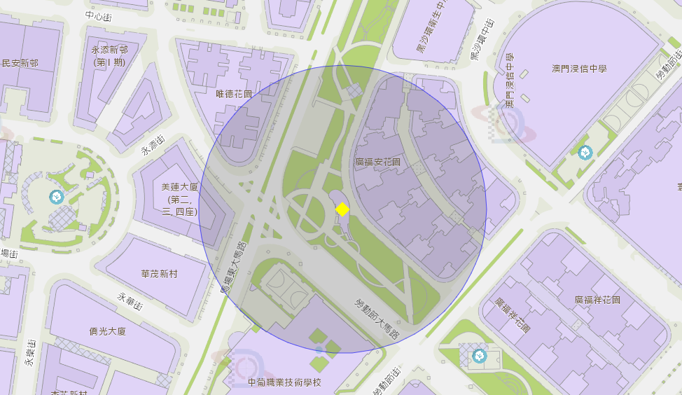 • 中心街永宁广场第四座附近风险区域100米半径范围