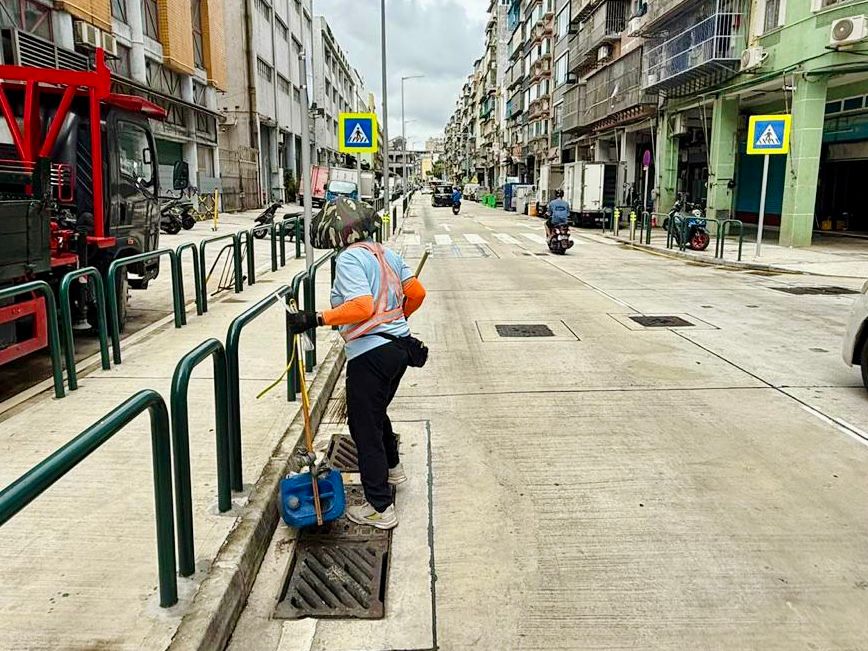 热带风暴“塔巴”正逼近本澳,同时正值天文潮迭加风暴潮影响,低洼地区有机会出现水浸。为应对可能出现的环境卫生状况,市政署协调清洁专营公司在八号风球悬挂前预先加固部分垃圾收集设施,加强清疏雨水渠口垃圾及落叶,加派人员及车辆加快清运市面垃圾。