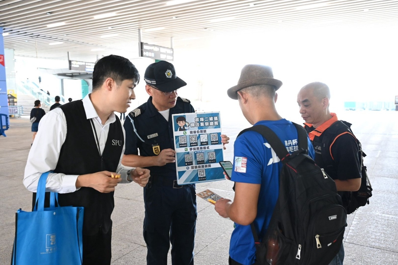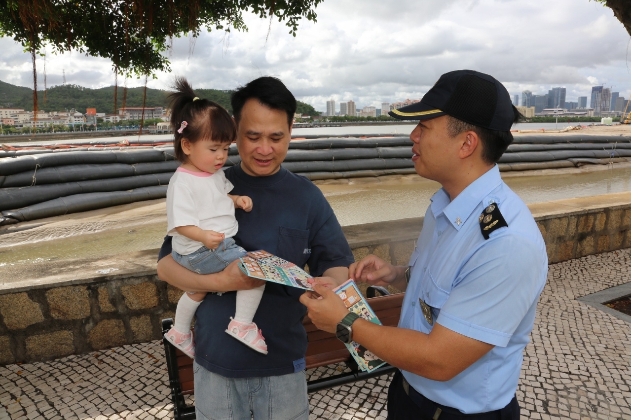 在警察总局统筹下,保安高校联同澳门海关、治安警察局、消防局等民防部门,派员前往路环市区尤其是低洼地区,向旅客、居民和商户派发民防宣传小册子,讲解防风防汛知识,提醒他们密切留意气象资讯、呼吁居民提前准备应急物资,并熟悉“台风期间风暴潮低洼地区疏散撤离计划”。亦派员前往横琴口岸,向旅客宣传防风知识及实用资讯,确保旅客掌握最新的民防动态,保障出行安全。