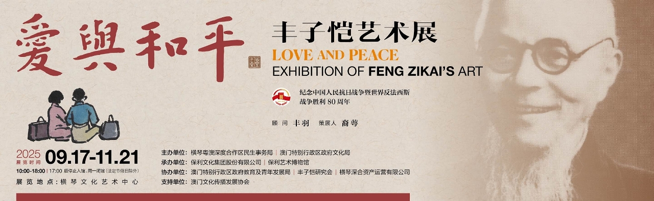 为纪念中国人民抗日战争暨世界反法西斯战争胜利80周年,传承和弘扬中华优秀传统文化的深厚底蕴,在横琴粤澳深度合作区成立四周年之际,“爱与和平——丰子恺艺术展”应运而生。本次展览由横琴粤澳深度合作区民生事务局与澳门特别行政区政府文化局主办,保利文化集团股份有限公司、保利艺术博物馆承办,澳门特别行政区政府教育及青年发展局、丰子恺研究会、横琴深合资产运营有限公司协办,澳门文化传播发展协会支持,旨在以艺术为桥梁,连接历史与当下,让粤澳居民重温丰子恺先生佳作,感受其爱国热忱与文人风骨。