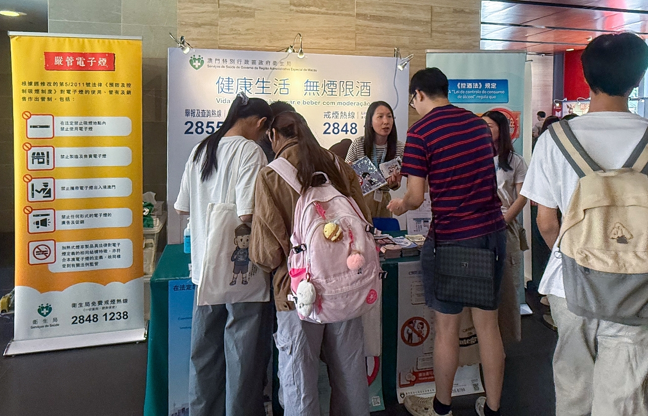 为落实《健康澳门蓝图》所订定的总体目标与各项指标,特区政府积极推动“健康社区”计划,通过政府跨部门合作,联动社团机构力量,发挥协同效应,持续开展多元化健康科普活动。日前,卫生局防控烟酒办公室应澳门理工大学邀请,参与“2025防罪资讯周”活动,向该校师生介绍《控烟法》与《控酒法》的主要内容及烟酒危害健康之相关资讯,活动吸引超过300人次参与。