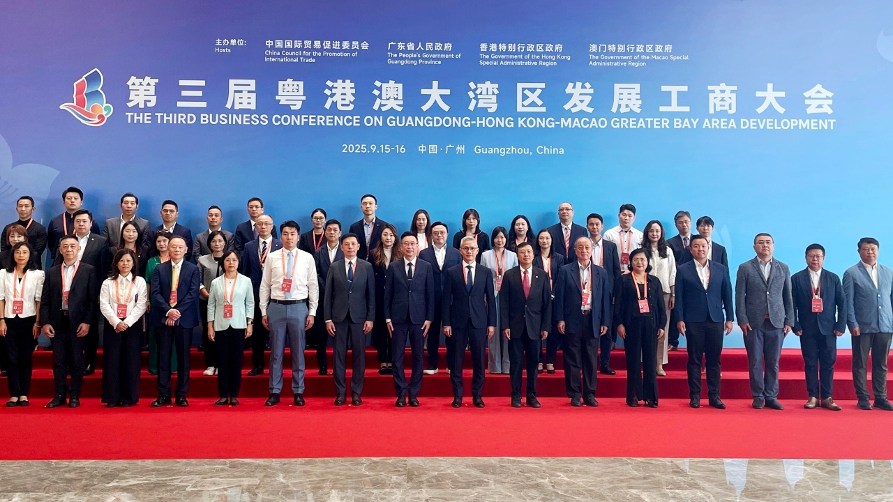 第三届粤港澳大湾区发展工商大会于2025年9月15日至16日在广州白云国际会议中心盛大举行。全国政协副主席姜信治、广东省人民政府省长王伟中、澳门特别行政区行政长官岑浩辉、香港特别行政区行政长官李家超、中国国际贸易促进委员会会长任鸿斌及中国工商银行行长刘珺分别于15日举行的开幕式发表讲话及作视频致辞。