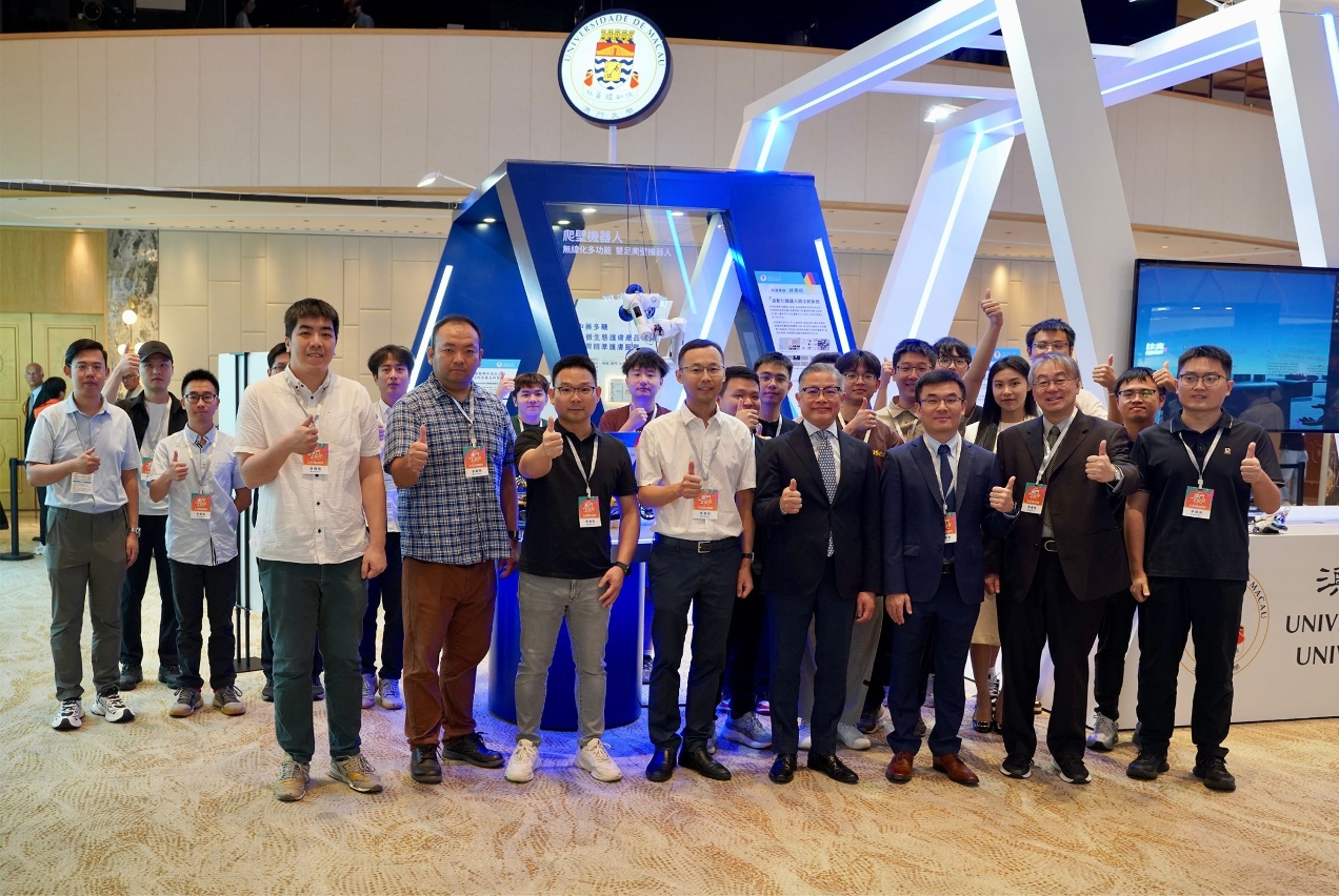 澳大是次展出的重点科研成果瞩目。科技学院教授Carlos Silvestre研发的用于浅水介入的海洋航行器ORVIS,作为澳门首个自主研发的自主水下航行器,它标志着澳门在高端海洋装备设计与集成能力上的突破;另外,科技学院教授徐青松研发的自动化机器人微注射系统和爬壁机器人,科技学院助理教授钟俊文研发的用于虚拟现实的可穿戴触觉反馈装置和智能微型机器人,应用物理及材料工程研究院教授曲松楠、副教授孙国星分别研发的基于碳纳米点的皮肤修复水凝胶、高分子/水泥纳米复合材料,微电子研究院助理教授李家明研发的微型化磁力共振成像系统,智慧城市物联网全国重点实验室教授周万欢、副教授颜王吉分别研发的光纤光栅传感基础设施安全监控系统、桥梁“听诊器”智慧感知系统,中华医药研究院副教授何承伟与澳门企业合作开发的“澳门一条筋”贴片,健康科学学院教授陈国凯研发的间充质干细胞化学组分明确无血清完全培养基亦一同亮相。