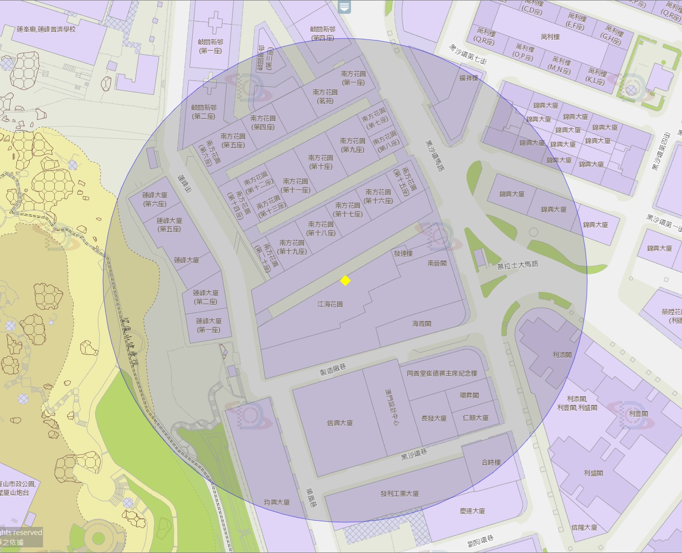 • 青洲坊大厦第四座附近风险区域100米半径范围
