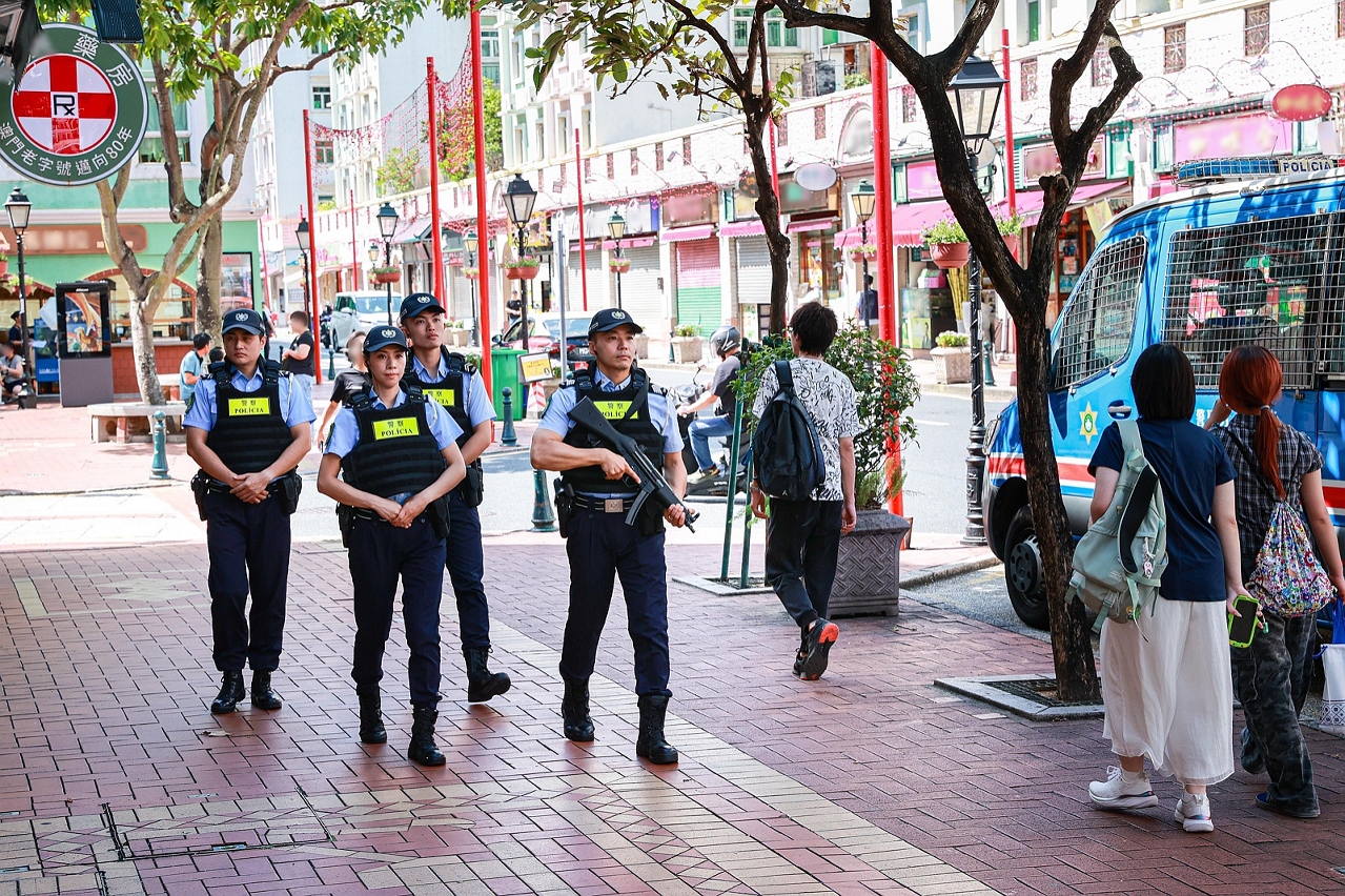 节假日期间,本澳新马路、大三巴、氹仔旧城区及金光大道等主要旅游热点游人如织。治安警察局根据现场人流变化动态调整警力部署,分别于10月2日、3日及4日下午在大三巴短暂实施人潮管制措施;而为配合氹仔旧城区及关前后街于节日期间设立临时行人专用区,在10月1日至10月7日中午12时至晚上7时在上述两个区域及周边道路实施临时交通管制措施;实施上述措施期间,市民及旅客均积极配合现场警方指示有序行进,整体秩序良好。
