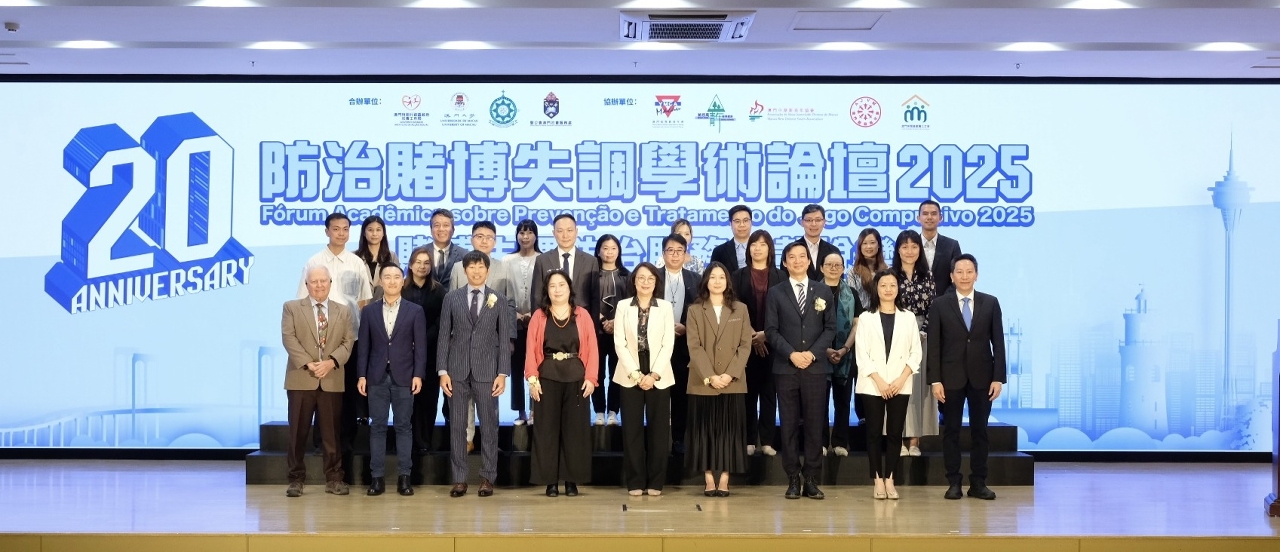由社会工作局、澳门大学、澳门理工大学及圣公会澳门社会服务处合办的「防治赌博失调学术论坛2025」于10月10日上午在澳门大学伍宜孙图书馆演讲厅顺利举行,约180人出席。