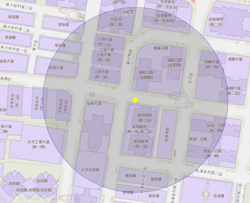 看台街巴士站一带附近风险区域100米半径范围