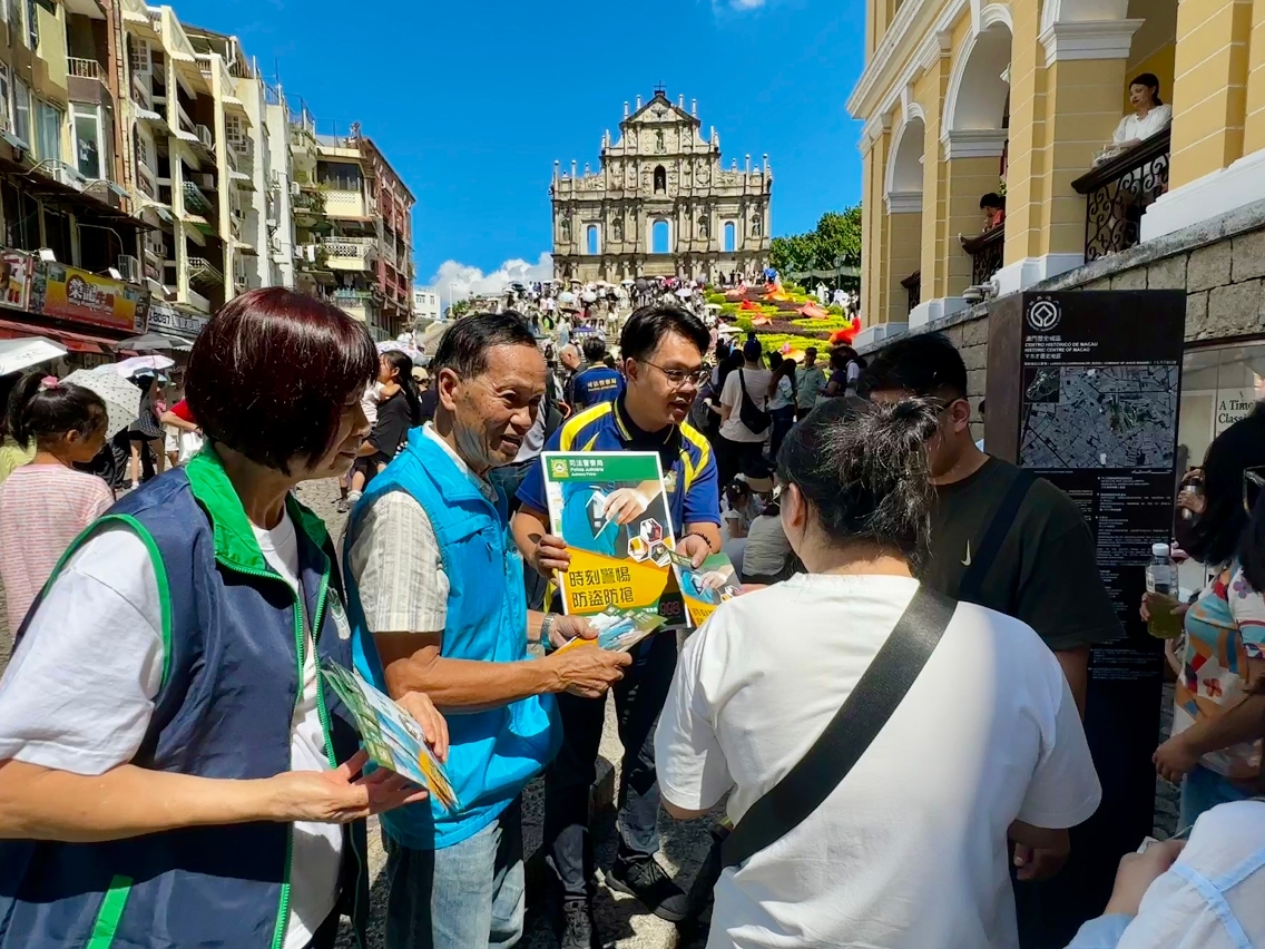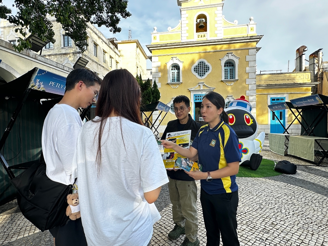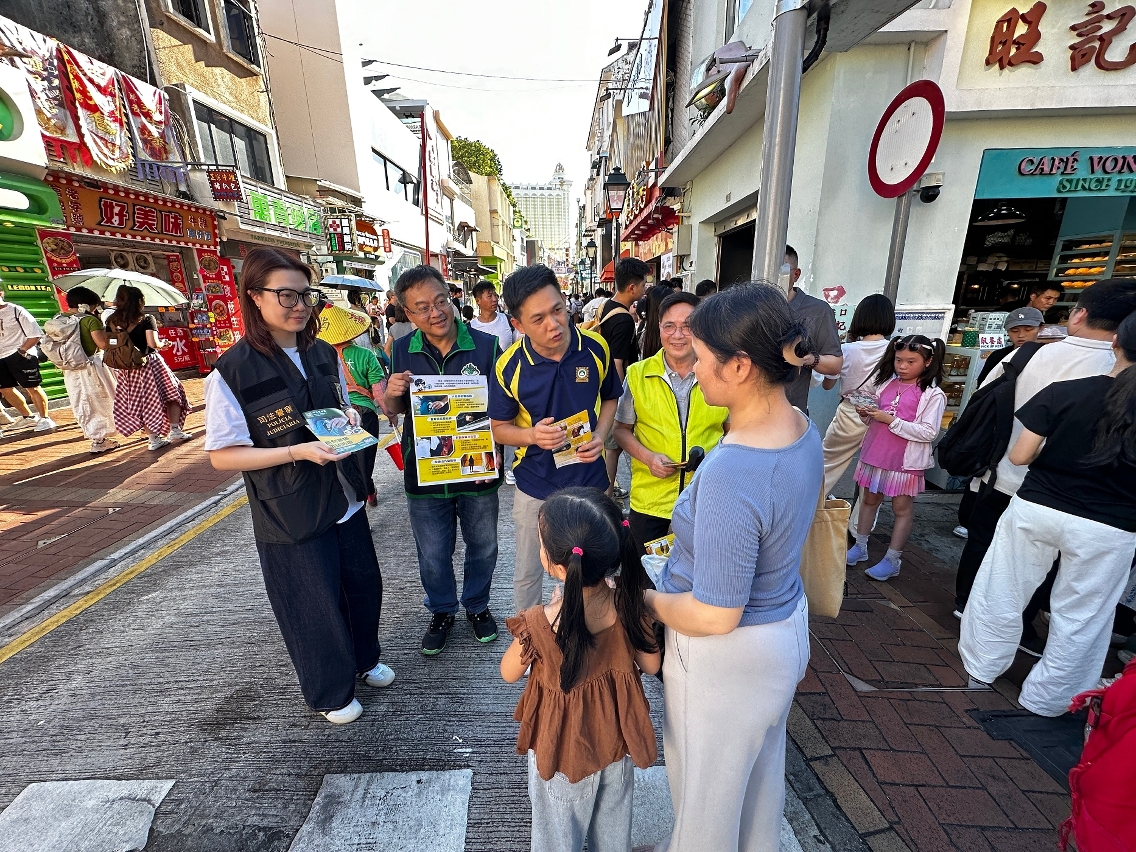 国庆长假期为访澳旅客的高峰期,各旅游区人流密集,不法分子往往伺机进行盗窃等犯罪活动。为提高市民及旅客对盗窃罪案的警惕意识与防罪能力,司法警察局派员联同“司警局大厦防罪之友”成员展开防罪宣传,向市民及旅客讲解防盗须知,以有效预防盗窃案件发生。