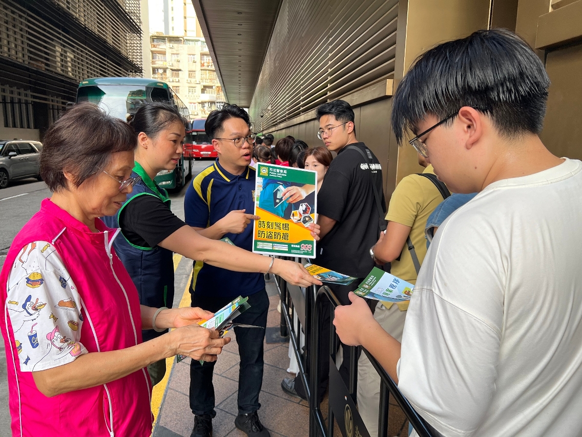• 司警局人员向市民和旅客派发防盗资讯及报案程序宣传单张