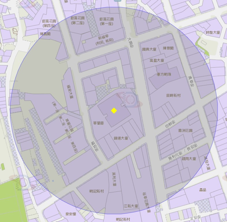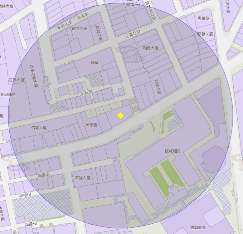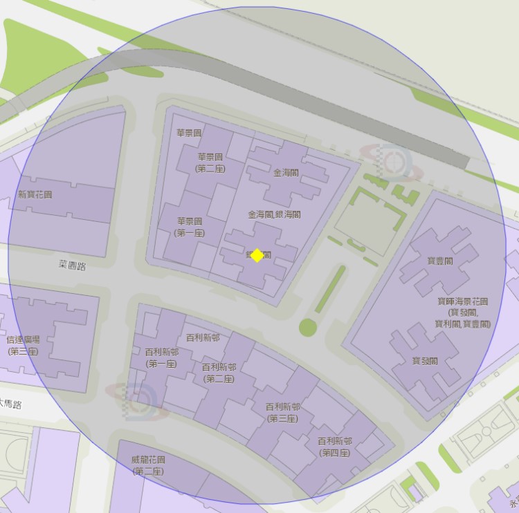 氹仔海洋花园荷花苑附近风险区域100米半径范围