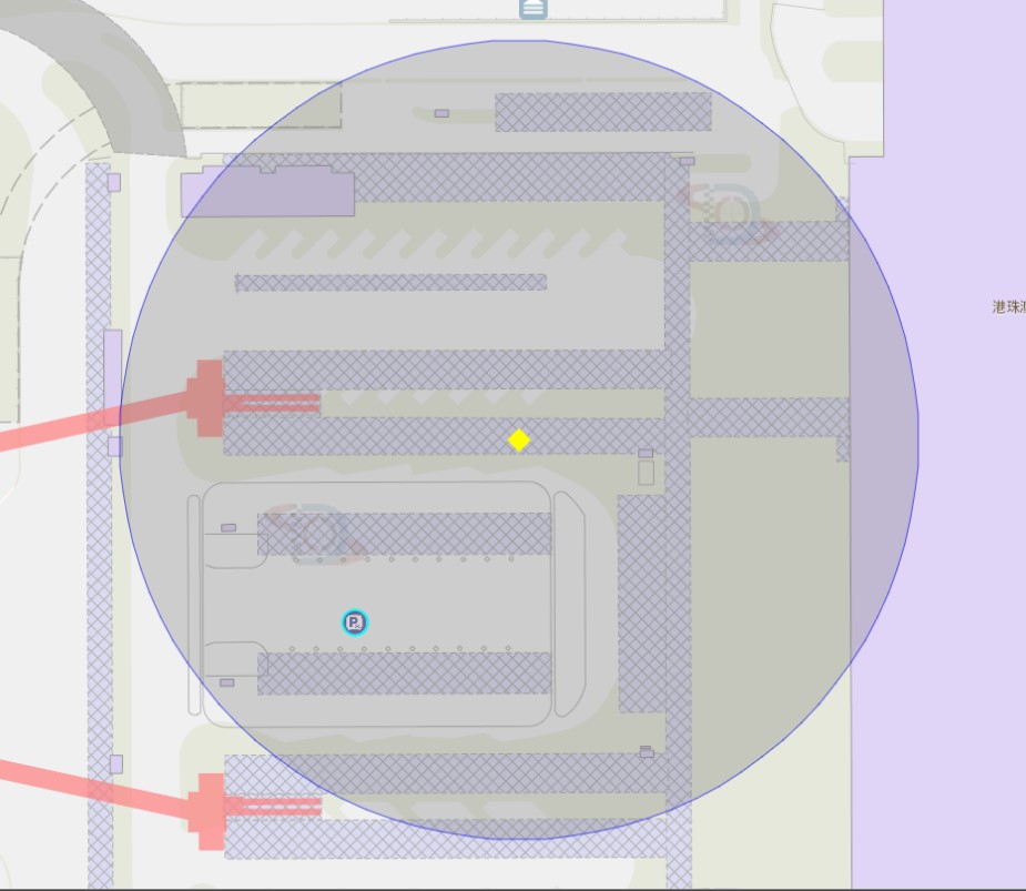 港珠澳大桥边检大楼巴士站附近风险区域100米半径范围
