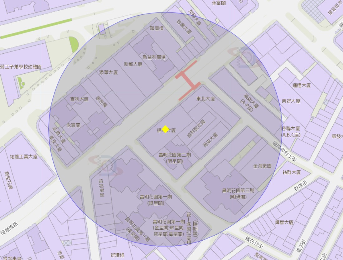 罗白沙街福来大厦附近风险区域100米半径范围