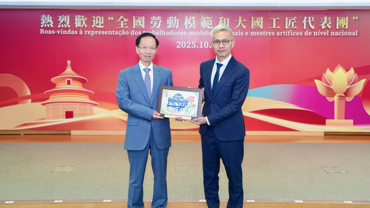 戴建业代表澳门特区政府,对代表团访澳表示热烈欢迎,并向全总成立100周年致以祝贺。戴建业表示,希望通过代表团访澳的系列活动,让本澳各界特别是广大劳动者,深刻领会劳模精神、劳动精神与工匠精神,在各自岗位上追求卓越,为澳门发展贡献力量。同时,代表团的劳动模范、大国工匠均是来自不同专业领域的杰出劳动者,其专业背景与澳门“1+4”经济适度多元战略布局高度契合,期待代表团能为本澳相关产业的发展部署,提供宝贵经验和建议。