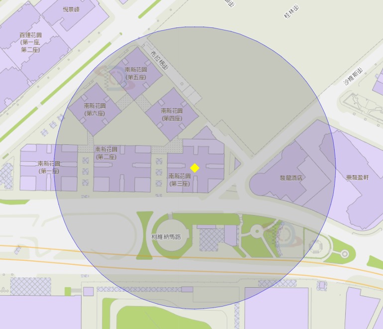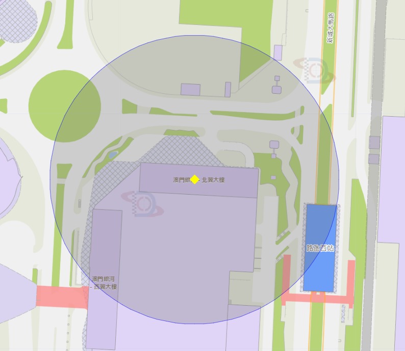 氹仔雄昌花园第二座附近风险区域100米半径范围