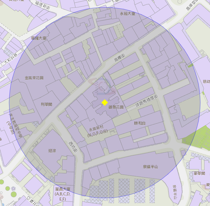 高楼街17 - 29号御景花园附近风险区域100米半径范围