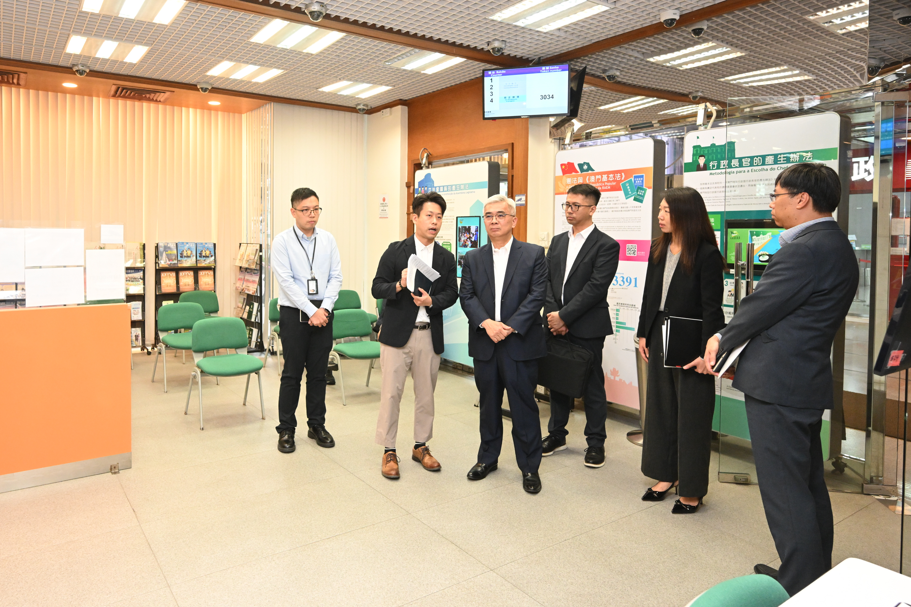 27日下午,黄少泽司长在行政公职局局长梁颖妍等陪同下,视察该局办公空间并与领导主管人员会面,重点了解公共行政改革推进、选民登记事务及政府资讯中心前线接待工作,明确指示局方要做好未来数年公共行政改革核心任务,并了解“一户通”电子政务的发展情况。同日,黄司长亦到印务局视察,在局长梁葆莹等陪同下,深入了解该局10月31日并入法务局后人员安排状况,以及各项印务核心工作,并与前线人员交流勉励,嘱咐坚守岗位确保印务工作顺畅开展。