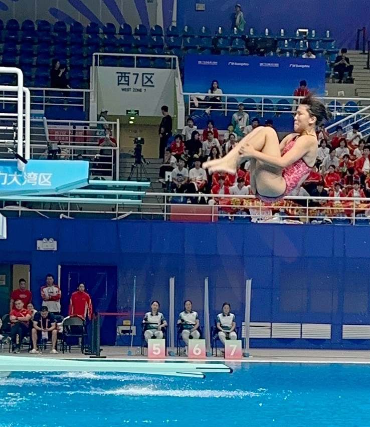昨(5)日进行的跳水女子1米跳板比赛,赵婞愉 (ZHAO HANG U)及梁欣宜(LEONG IAN I)均完成5跳动作,分别获得182.9分和109.3分,位列第20名和第21名。