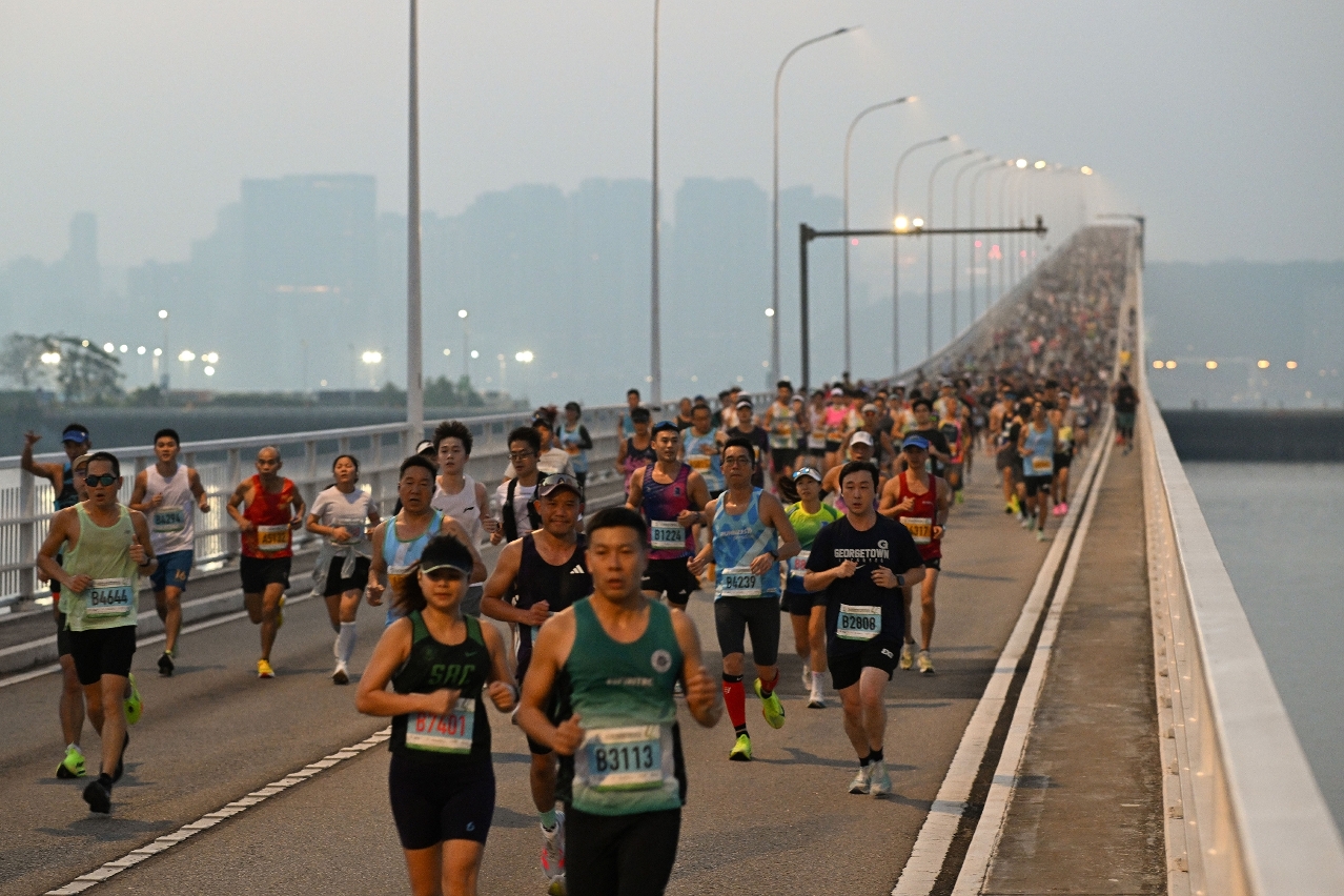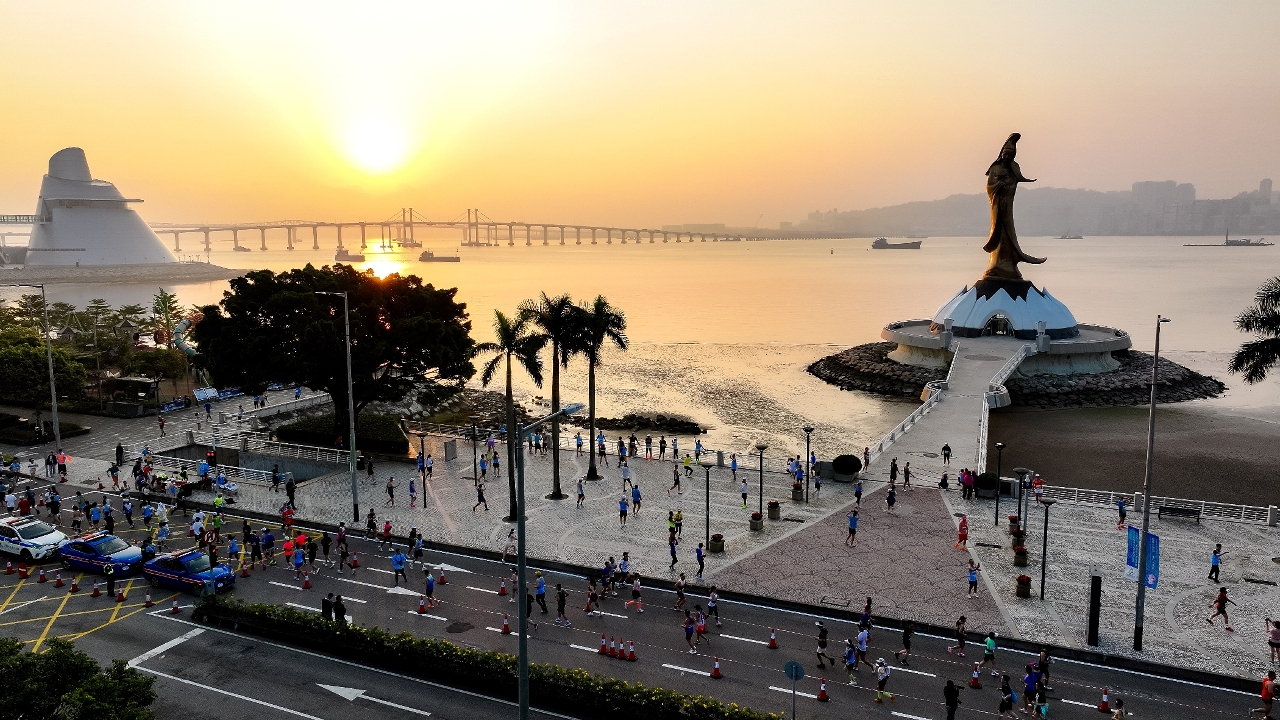 踏入第44 届的「澳门国际马拉松」赛事于今日上午六时展开,马拉松及半程马拉松路线途经嘉乐庇总督大桥、世遗景点妈阁庙以及西湾大桥等景点。社会文化司司长柯岚、体育局代局长李诗灵、银河娱乐集团主席吕耀东、澳门田径总会理事长陈步倩和银河娱乐集团企业事务董事林志成主持鸣枪起跑仪式。