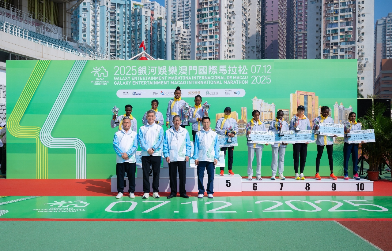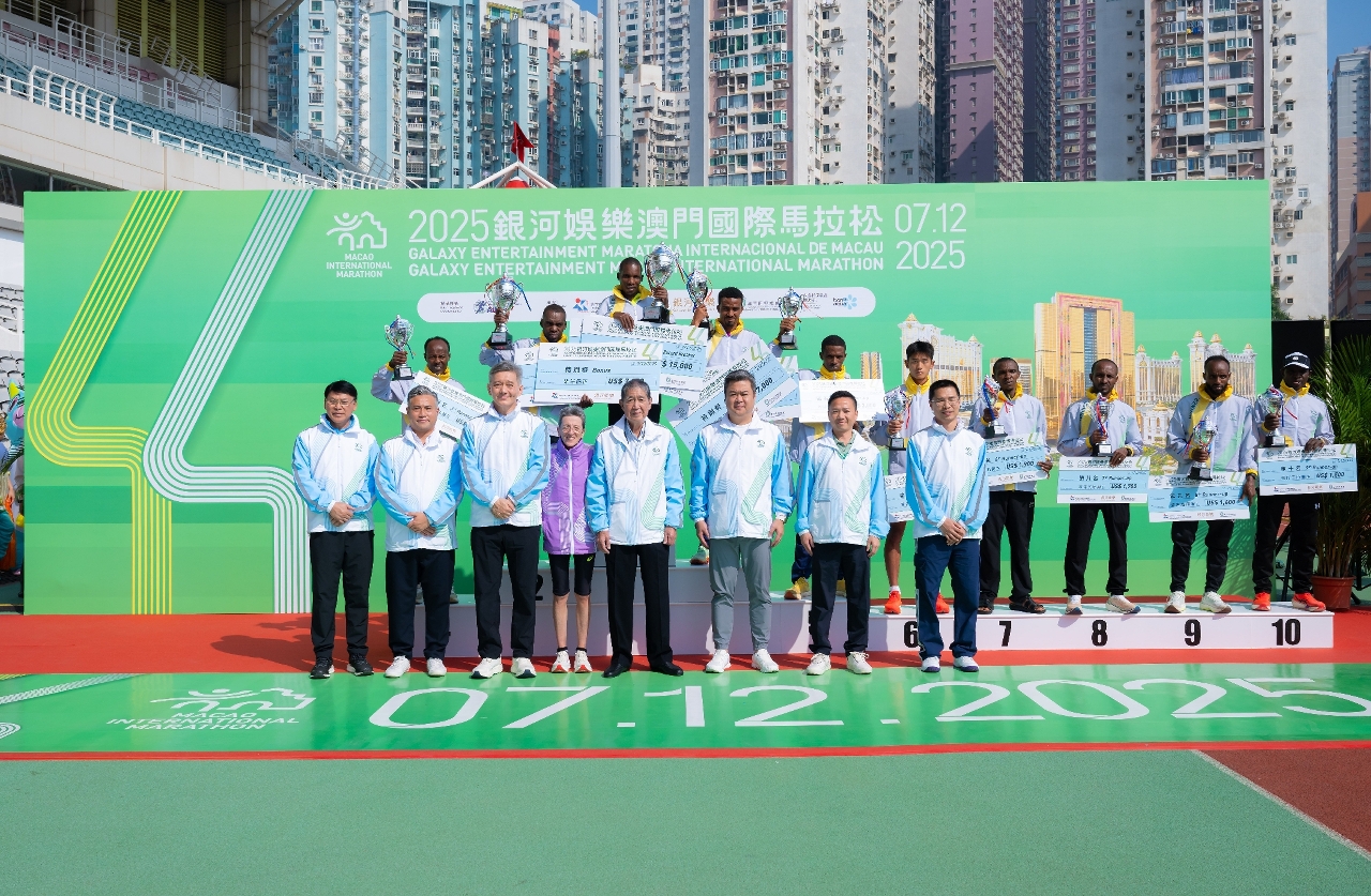 由体育局、银河娱乐集团及澳门田径总会主办的「2025银河娱乐澳门国际马拉松」今(7)日于奥林匹克体育中心运动场圆满举行,马拉松男子全场组别由肯尼亚的杰志钊(Victor Kipchirchir)勇夺冠军,同时刷新大会纪录,而马拉松女子全场组别则由埃塞俄比亚的辛妮(Mastewal Birhanu Senay)封后;冯瑛玮和吴杨杨则分别赢得马拉松澳门运动员男子组和女子组冠军。