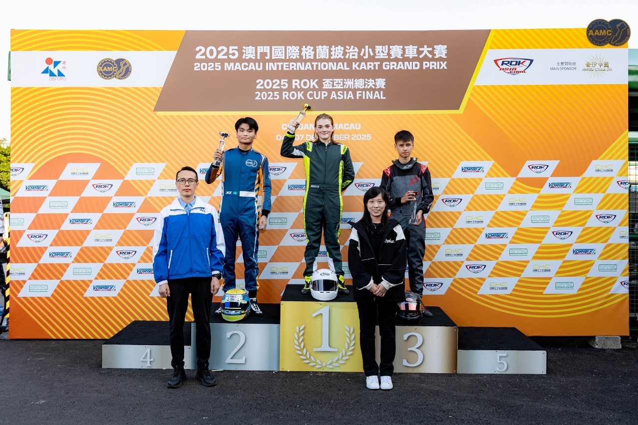 由体育局、中国-澳门汽车总会、OTK小型赛车亚洲区及IAME亚洲区主办,金沙中国有限公司赞助的「2025澳门国际格兰披治小型赛车大赛」于12月4日至7日在路环小型赛车场上演第一周比赛,包括 2025 ROK 杯亚洲总决赛 (迷你ROK组、青少年组、成人组、大师组) 和中国-澳门汽车总会小型赛车赛 (KZ组第八回合、AAMC杯、金沙杯)。各组别决赛成绩如下: