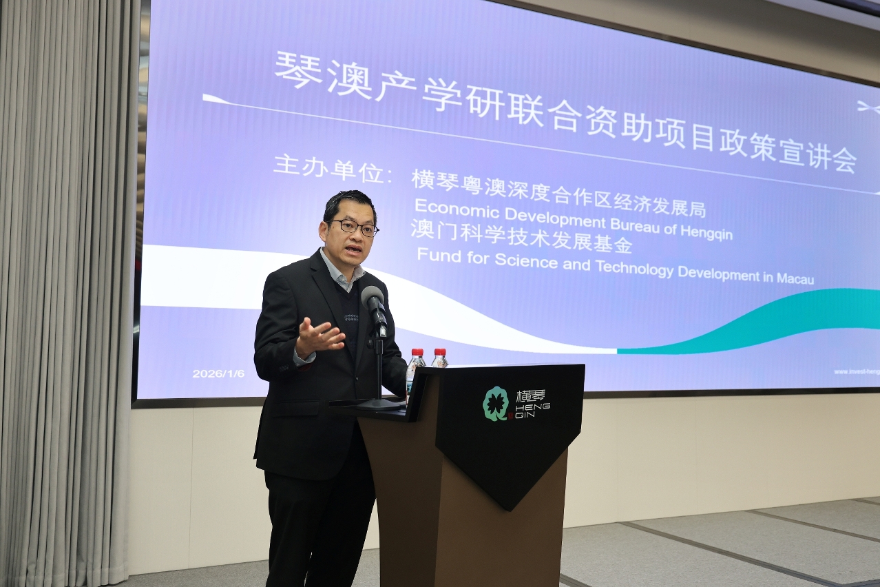 余雨生致辞时表示,2025年中央经济工作会议再次明确提出建设“粤港澳大湾区国际科技创新中心”,标志着大湾区科创发展进入加速期。 “澳门研发、横琴转化”已有项目按序推进。去年11月,由澳门科研机构牵头的两所“粤港澳联合实验室”获授牌,其运作紧扣澳门与合作区的科创联动,反映澳琴产学研合作条件日趋成熟。按照科技基金今年工作部署,促进澳琴产学研合作列为最关键的工作之一。
