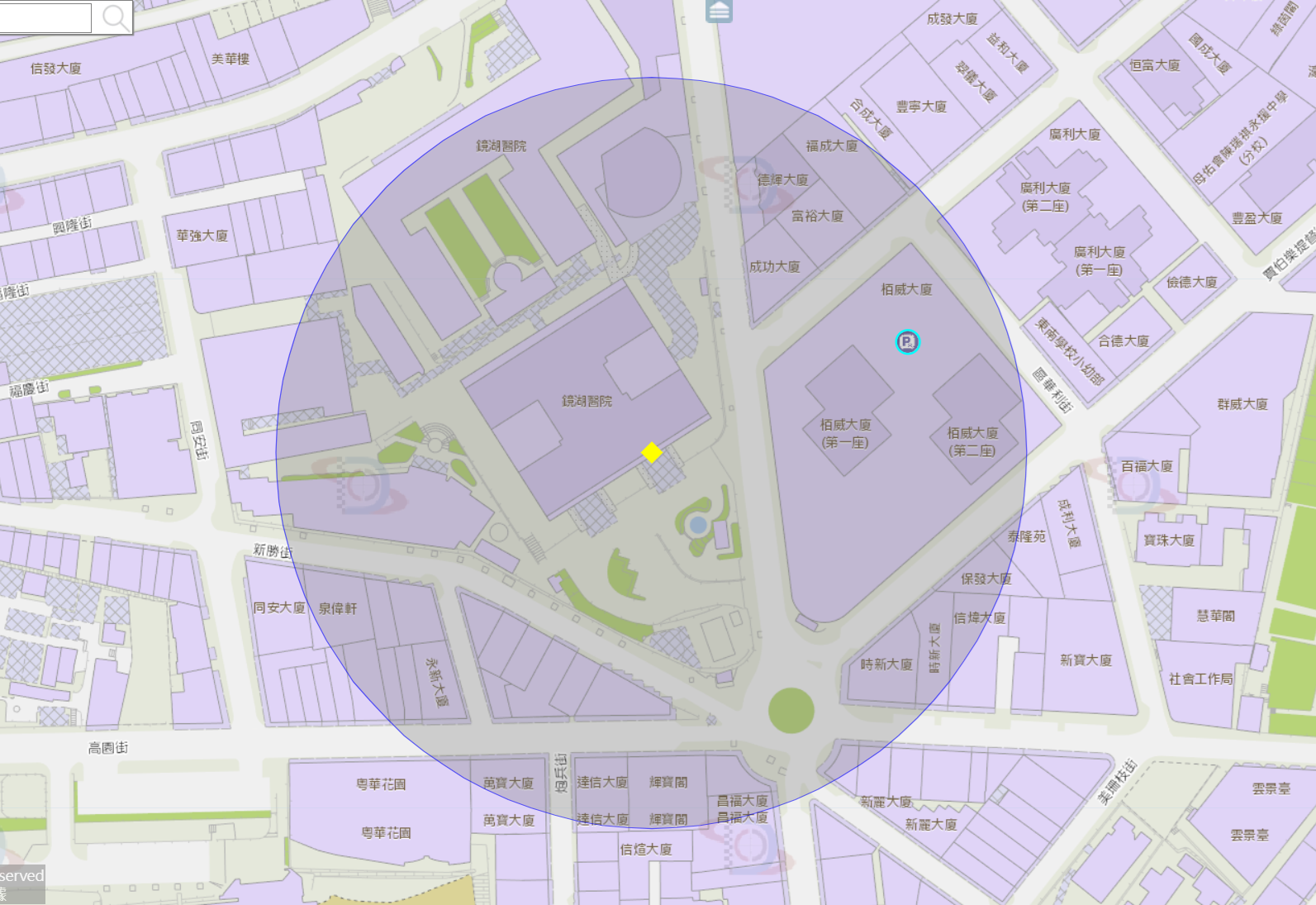 镜湖医院附近风险区域100米半径范围