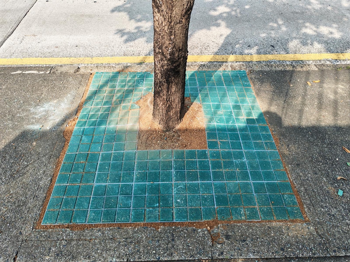 市政署树木管护人员经多年观察及养护实践,逐步采用新型的高渗透、高强度的疏水透气材质取代旧有的格栅,雨水可更易渗透并直接浇灌树木根系;坚固平整的表面亦避免垃圾隐匿和绊脚风险,同时亦具保水、保护树根、防止杂草丛生的作用。