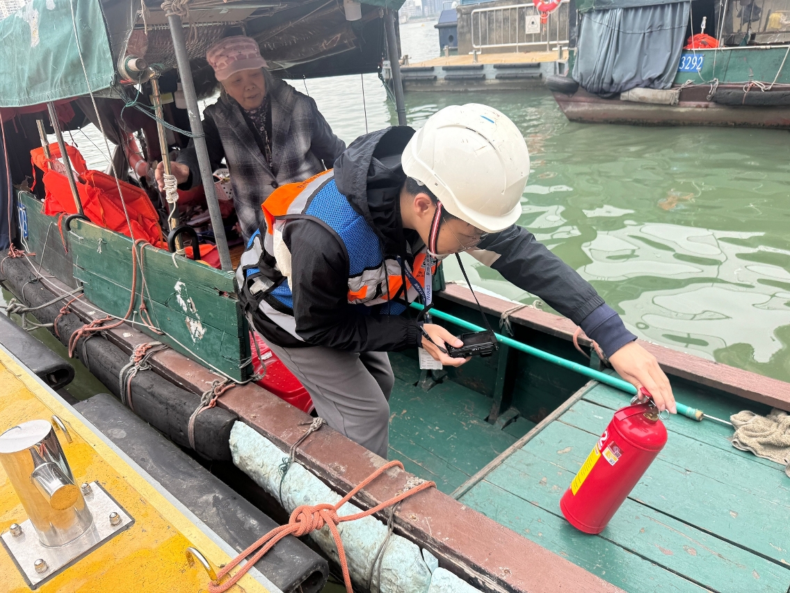 海事及水务局加密抽查水上的士的消防、救生和应急设备,并向相关水上的士从业员讲解航行安全须知,提醒必须严格遵守载客规定,确保乘客全程穿着救生衣,保障安全。