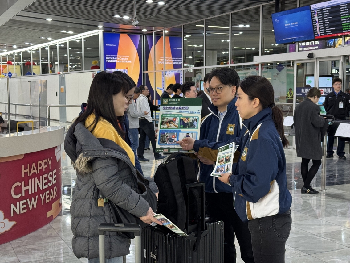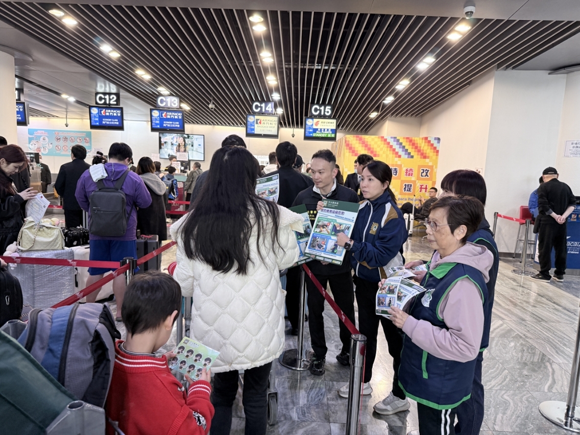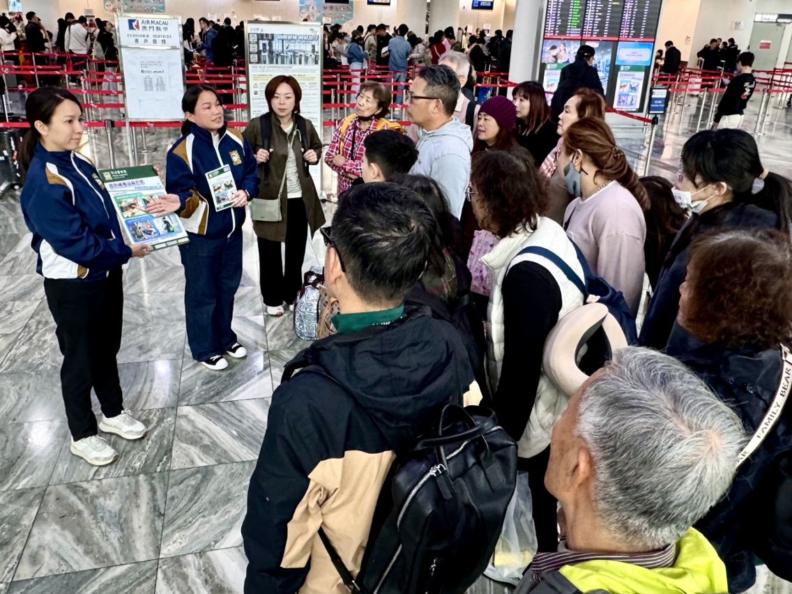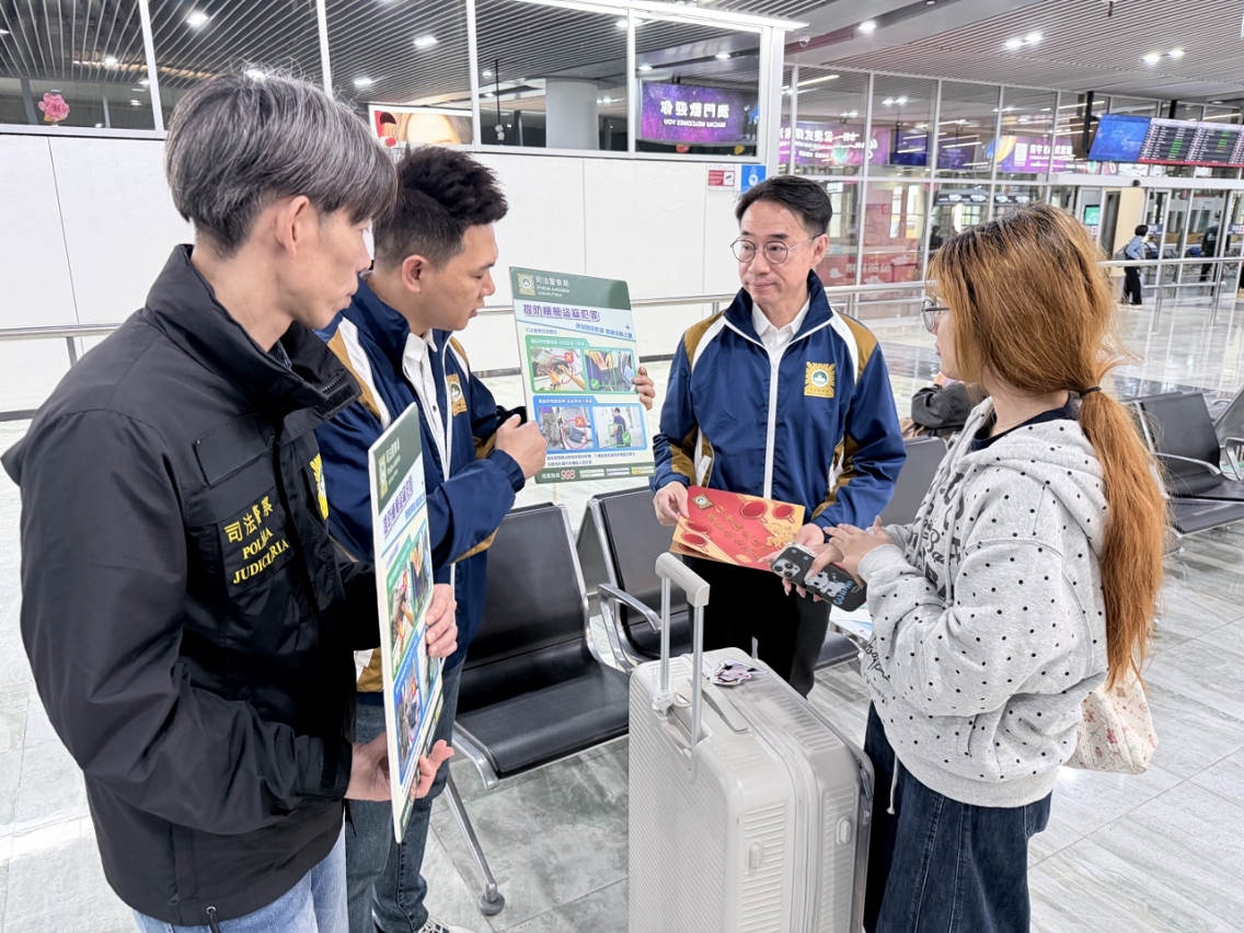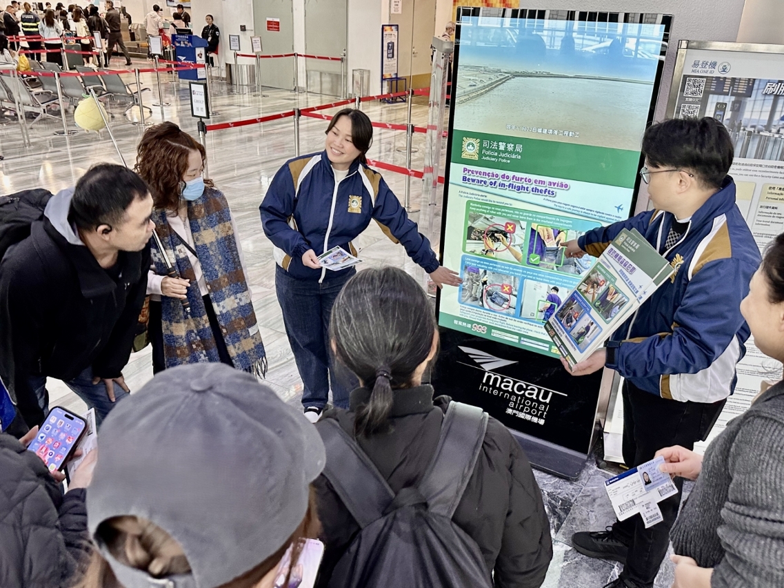 新春假期将至,不少市民外游或回乡度岁,为提高公众防罪意识,司法警察局于2026年2月9日至13日期间在澳门国际机场离境及入境大堂开展防罪宣传活动,重点向市民及旅客讲解预防机舱盗窃等资讯,呼吁他们在外游期间应注意财物安全。是次宣传共接触约2,000人次。