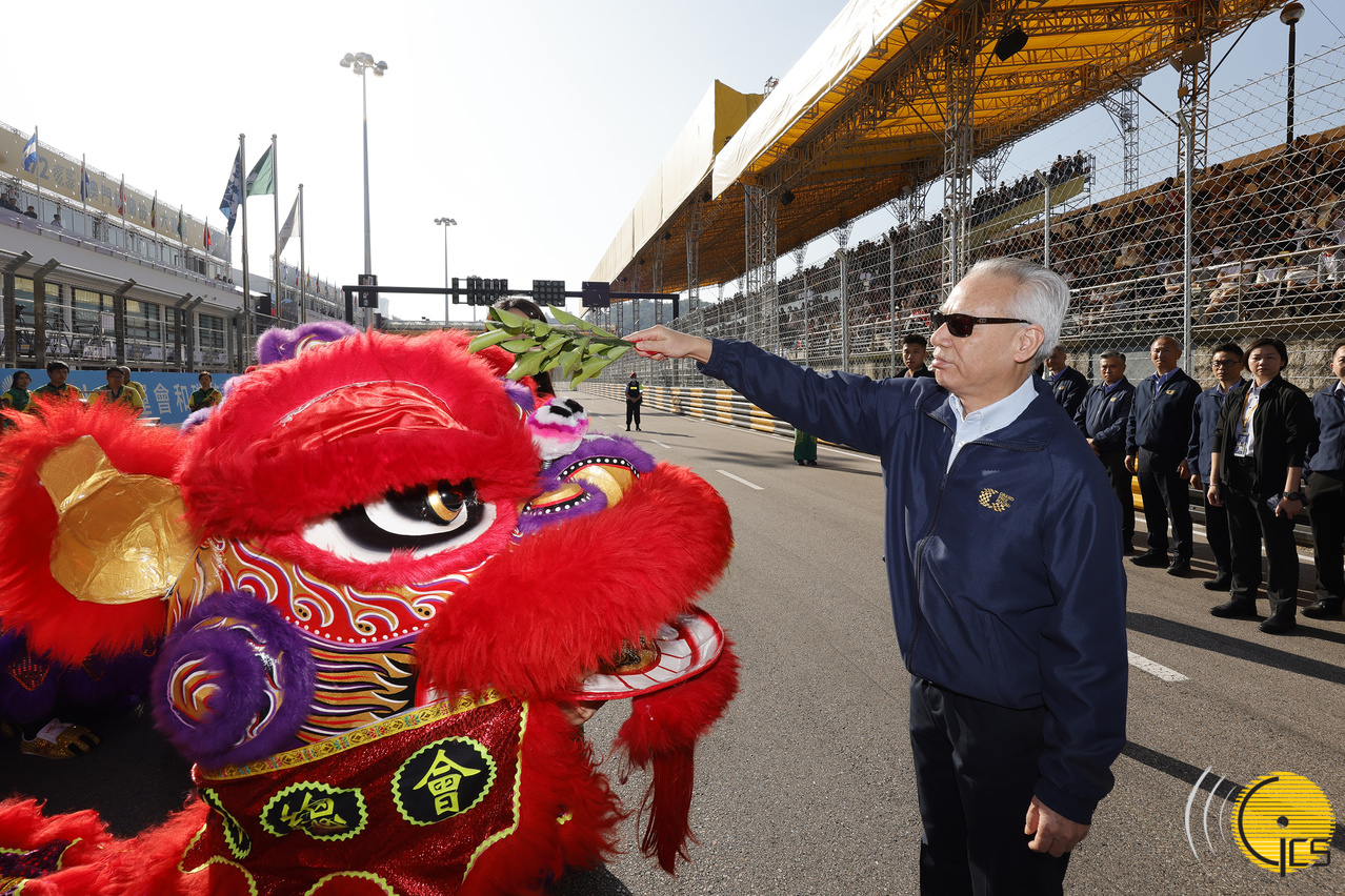 行政長官岑浩輝主持第72屆澳門格蘭披治大賽車醒獅點睛儀式。