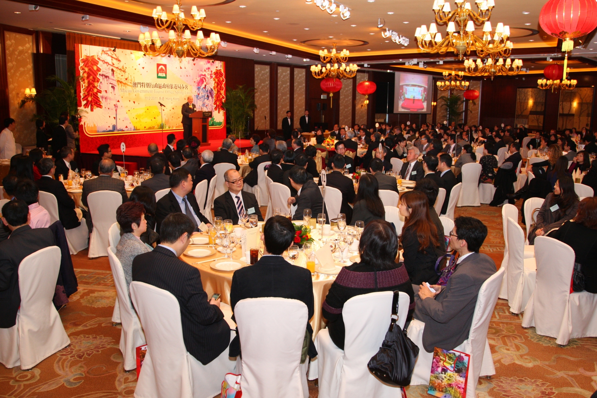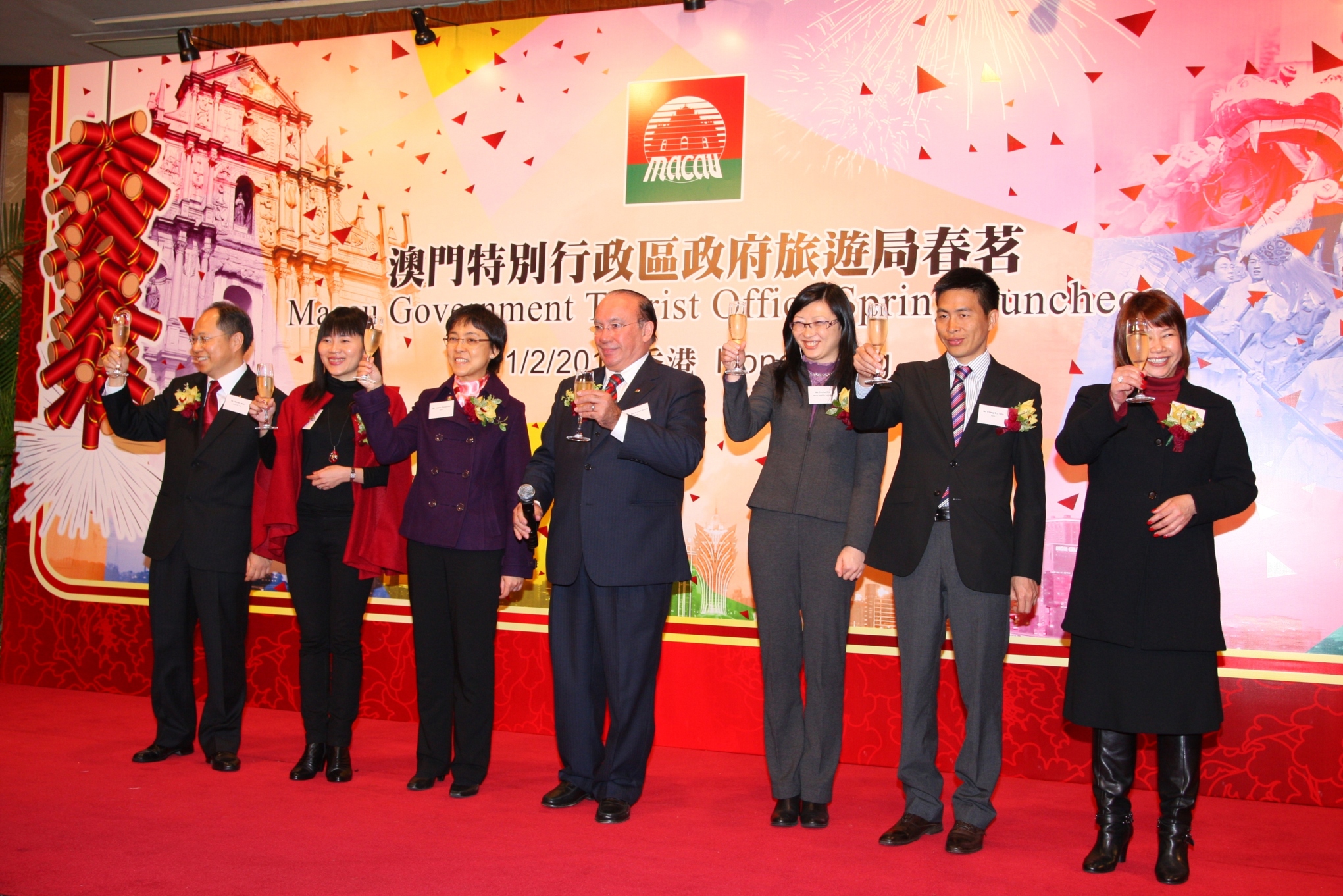 為答謝香港旅遊業、商界伙伴及傳媒朋友於過去一年對澳門旅遊業發展所作出的努力及貢獻,澳門特別行政區政府旅遊局於今午(11日)假香港港麗酒店舉行春茗,宴請二百多位嘉賓朋友,一同慶賀兔年來臨。