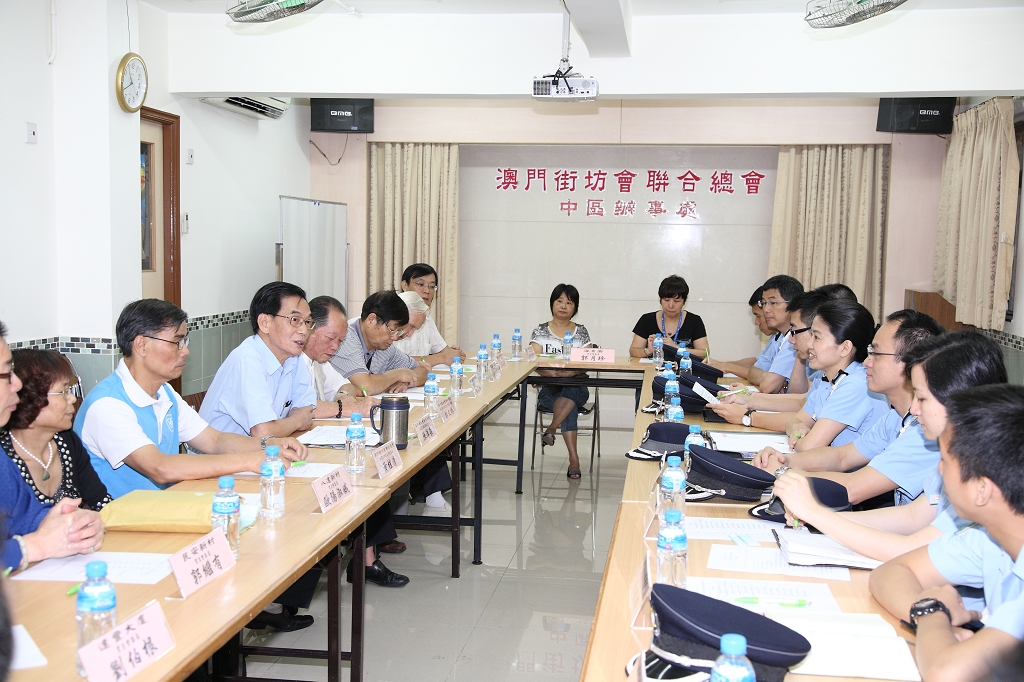 為進一步加強與社區的合作,於5月25日上午,本局行動廳公共關係處處長劉運嫦副警務總長連同該處四名發言人,以及由澳門警務廳、離島警務廳派出的警官一行十一人拜訪街總大廈管理資源中心,獲中心主任陳溥森先生、大廈工作委員會顧問林文彬先生、副主任黃桂清先生等街總代表及區內多個業主會代表親切接待。劉運嫦副警務總長向資源中心的接待表達了感謝,此次是繼月初拜訪街總後關注社區警務的延續活動,希望了解中心的工作,聽取街總及業主代表的意見,以期完善社區警務。