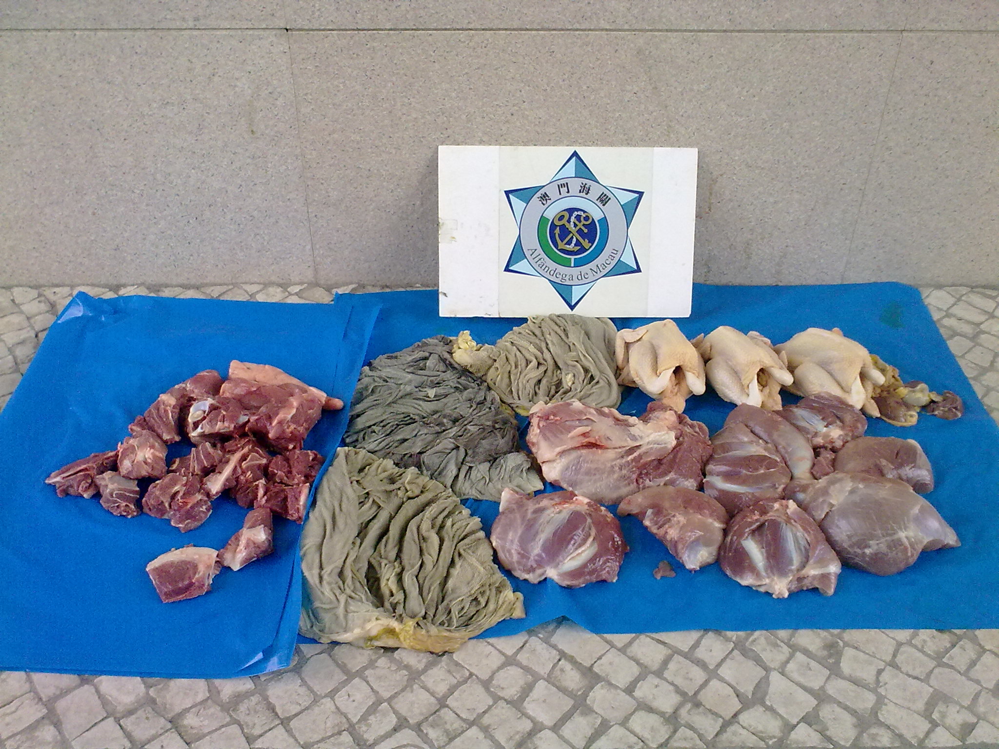 針對一些未經檢疫的肉類流入澳門,今天,澳門海關行動管理廳關員緝獲一宗非法進口肉類案件,共檢獲33公斤未經檢疫之己宰鮮家禽。一名收集者被邀往海關總部協助調查。