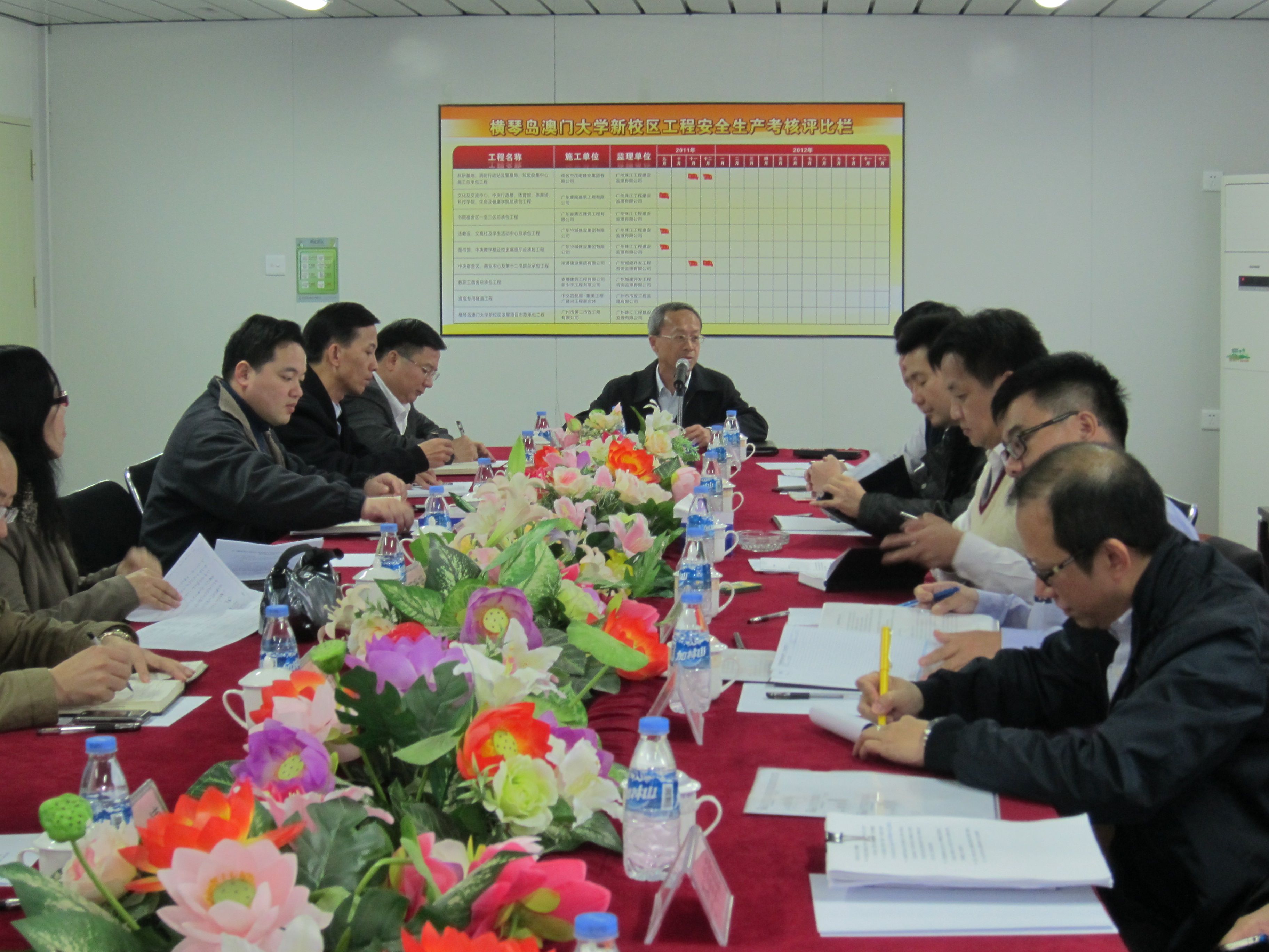 會議聽取建設和管理單位廣東南粵集團現場負責人報告了澳大項目的現場建設管理工作情況。2011年,澳大新校區建設穩步推進。在規劃設計方面,單體設計總體完成,專項設計接近尾聲。在工程進度方面,6月份基本完成樁基施工,隨後進入單體主體結構施工高潮階段;11月份標誌性建築主體結構封頂;到目前為止,校區單體主體結構已完成85%以上的工程量;隧道工程亦穩步推進;園林市政等配套工程亦全面展開。