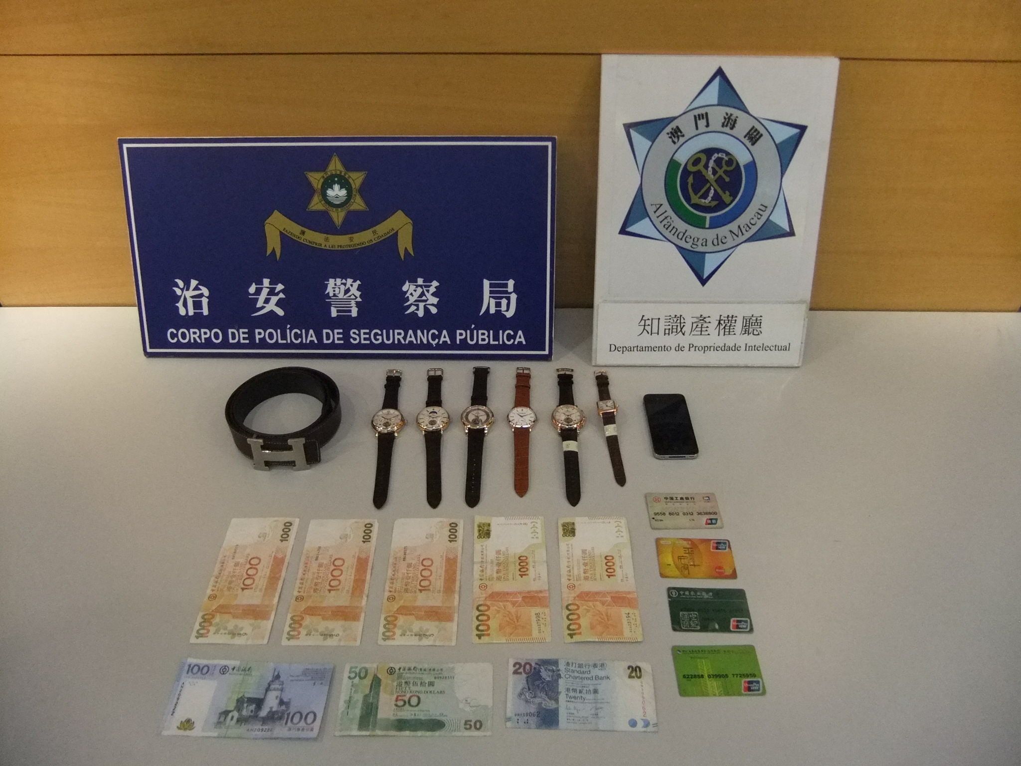 澳門海關持續與治安警察局透過快速聯審機制,在全澳各區進行加強打擊街頭售賣假冒偽劣貨品活動。於十月二十三日,治安警察局澳門警務廳一休假中的便衣警員,在途經新口岸區某酒店附近時,發現一名形跡可疑的男子主動地向途人兜售手錶,遂展開跟蹤調查,當該男子與一路經此地的途人達成協定並完成交易後,警員隨即表明身份並進行截查,查問期間有人神色慌張,支吾以對,隨後在其身上及隨身斜揹袋中查獲涉嫌侵權假冒手錶四隻,及在受害人身上查獲已完成交易之手錶兩隻,該兩名男子及後被帶返治安警察局協助調查,並隨即轉交海關知識產權廳繼續作進一步查處,此案海關將呈送檢察院偵辦。