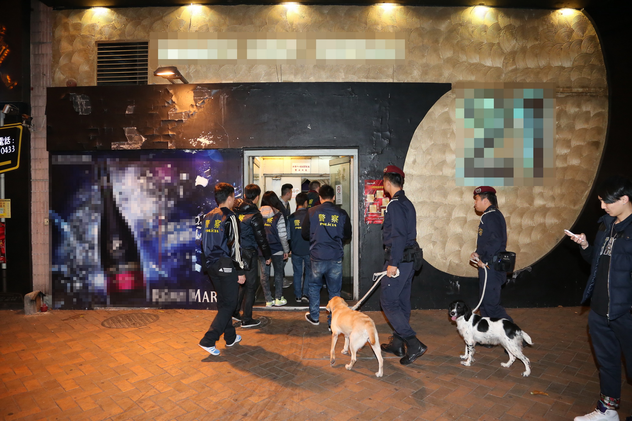 行動中,動用警力15人和2頭警犬,行動於01H30結束,無發現無牌經營或其他違規情況。
