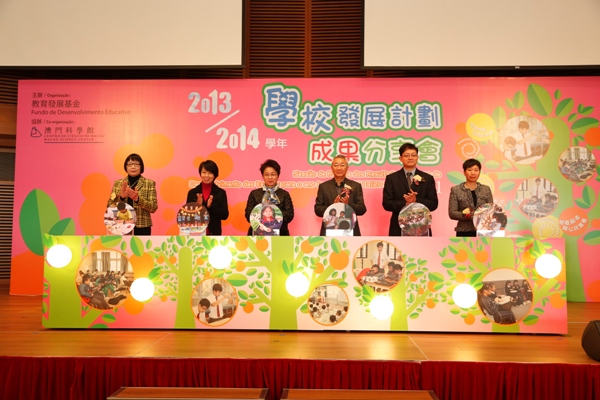 澳門特別行政區政府教育發展基金主辦、澳門科學館股份有限公司協辦的“2013/2014學年學校發展計劃成果分享會”於1月19日(星期日)假澳門科學館會議中心舉行。分享會設有“科普教學互動區”、“藝術教學互動區”及“展藝廊”。參與的學校展示了獲教育發展基金資助的學校發展計劃內容和成品。