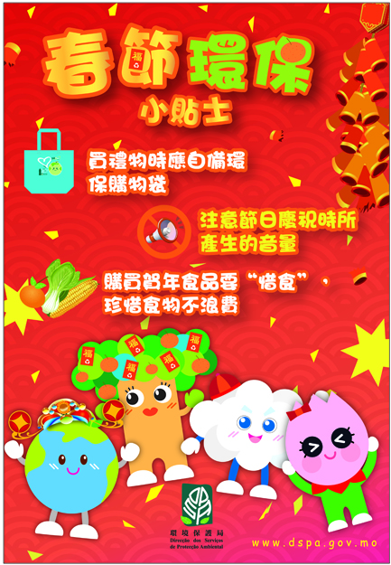 環境保護局祝願各位,新年快樂。想了解更多“春節環保小貼士”,歡迎瀏覽環境保護局網頁(http://www.dspa.gov.mo)。